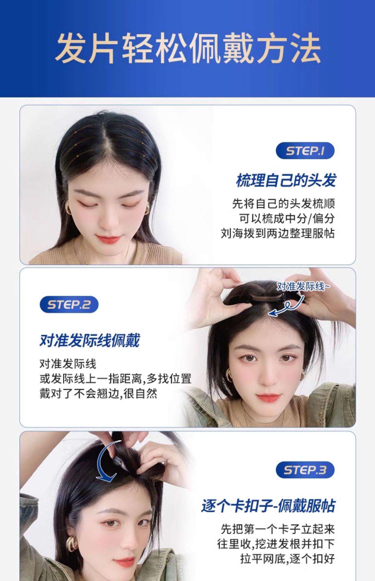 双递针高炉定全真发假发片 遮白发胎毛刘海蓬松增发量头顶补发片