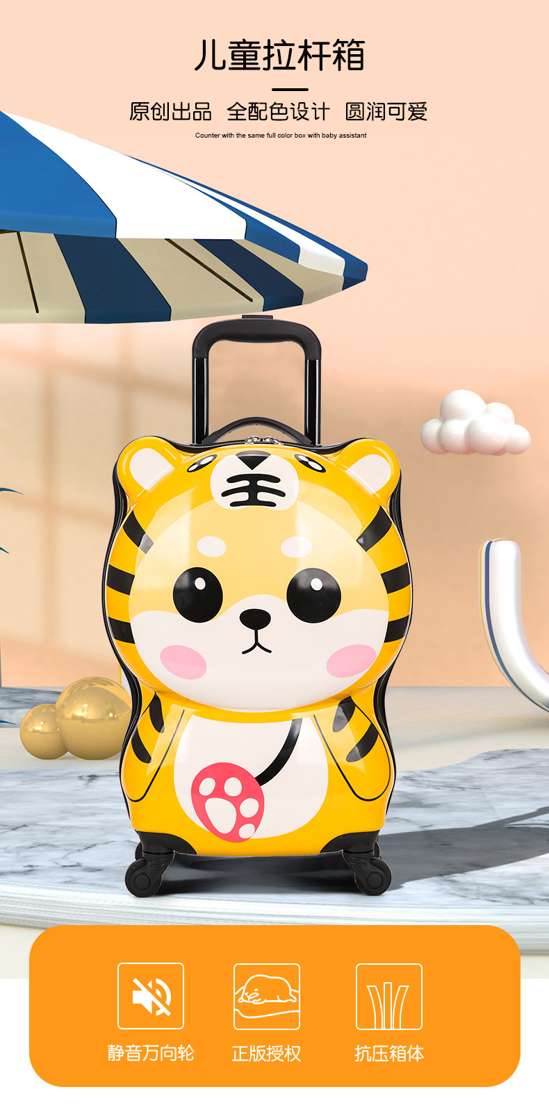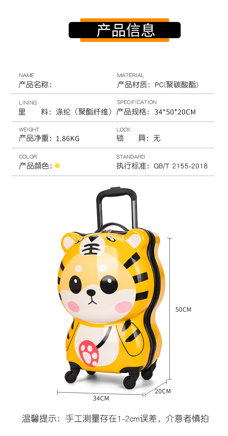 Cartoon cute children's trolley case new mute universal wheel luggage small tiger student boarding suitcase