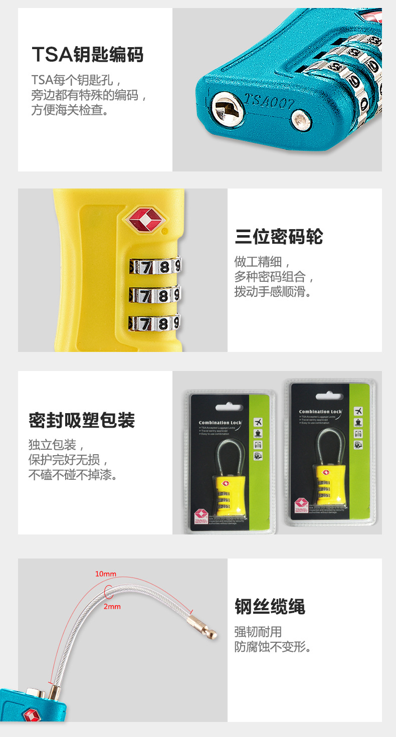 Wire rope password padlock student dormitory TSA travel abroad luggage customs password lock trolley case luggage