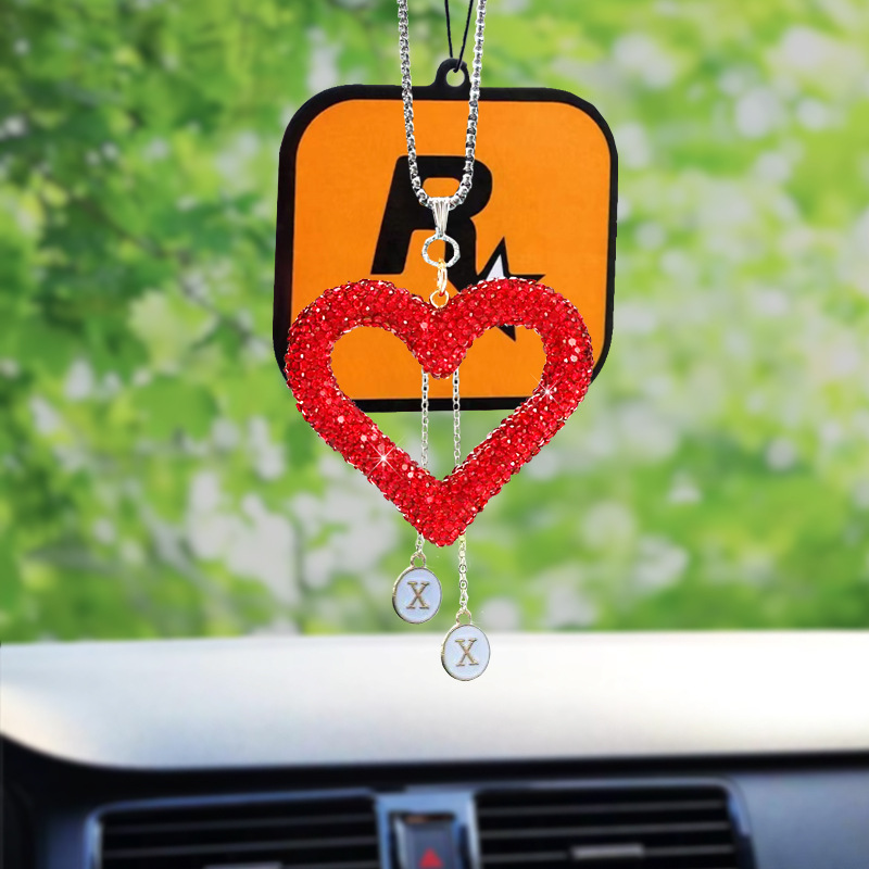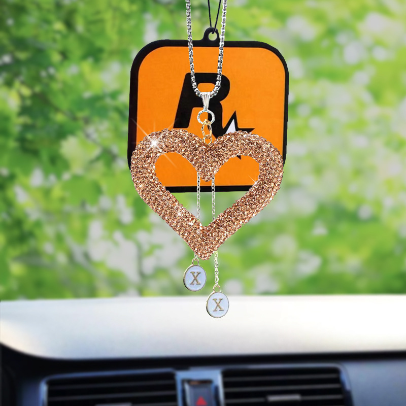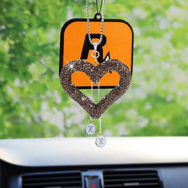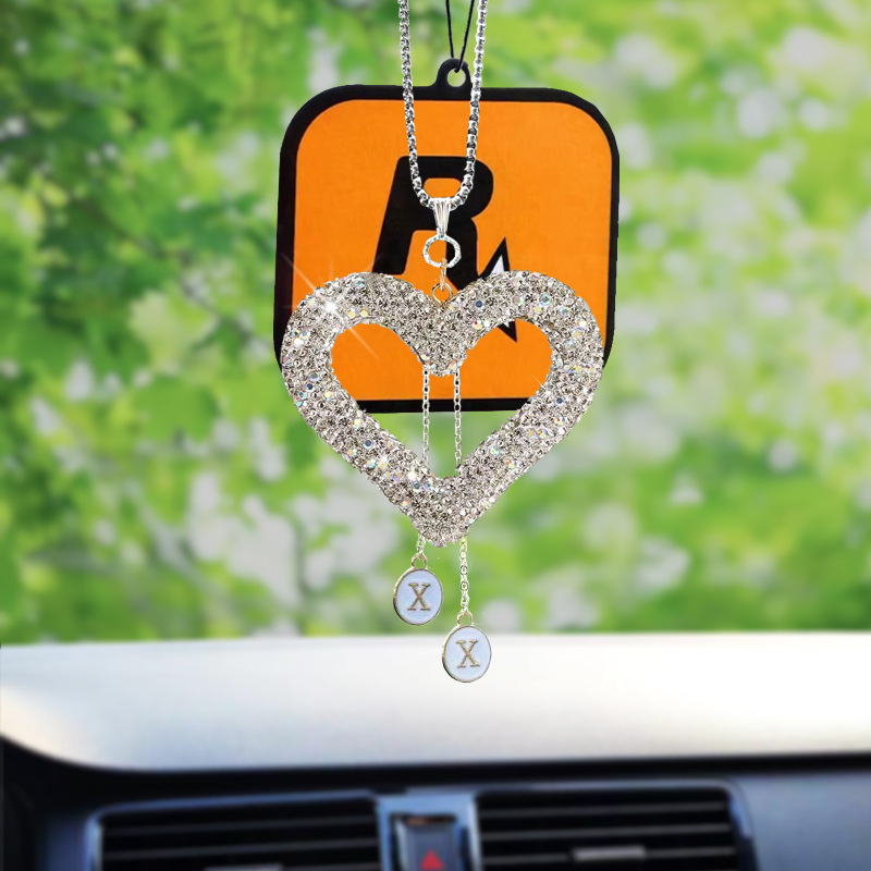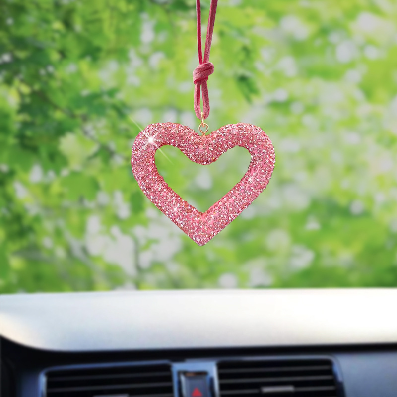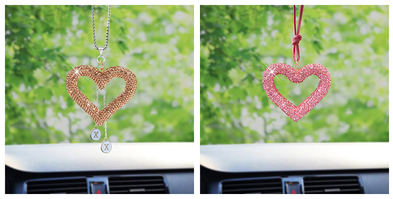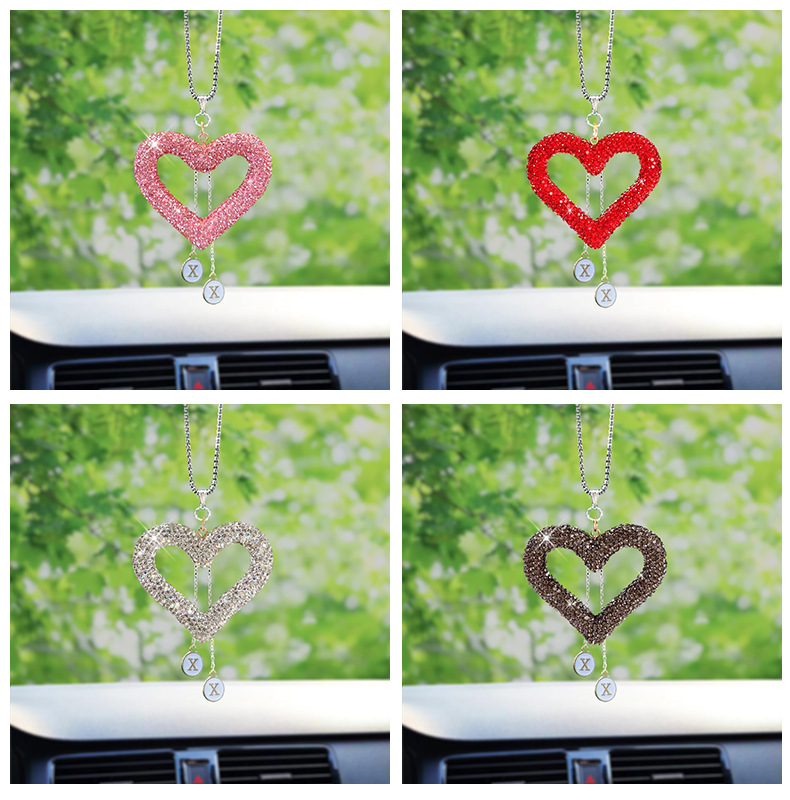 Diamond-encrusted car love rearview mirror pendant full diamond heart-shaped car interior pendant pendant new diamond-encrusted car pendant