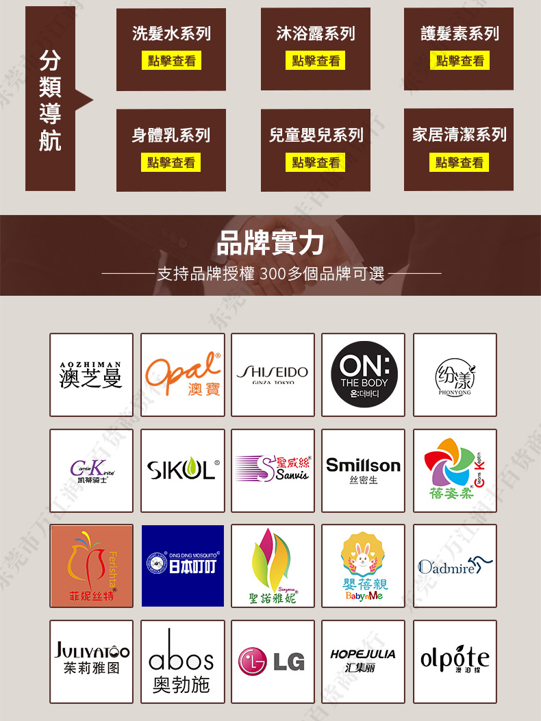 经营的品类有:洗发水,沐浴露,护发素,身体乳,发膜,护发精油等洗护沐用品,产品适合酒店,SPA会所,理发店发廊。进口洗发水,控油洗发水,洗发水套装,礼盒装,洗头水洗发膏,港货港版正品。类型有:去屑洗发水,控油洗发水,蓬松柔顺洗发水,生姜洗发水,儿童洗发水,艾草洗发水沐浴露,氨基酸洗发水,网红爆款,高端洗护用品,男士洗发水,身体清洁,身体护理,美发产品。