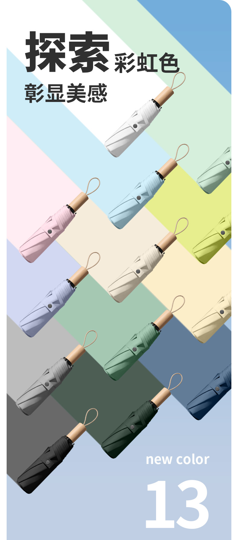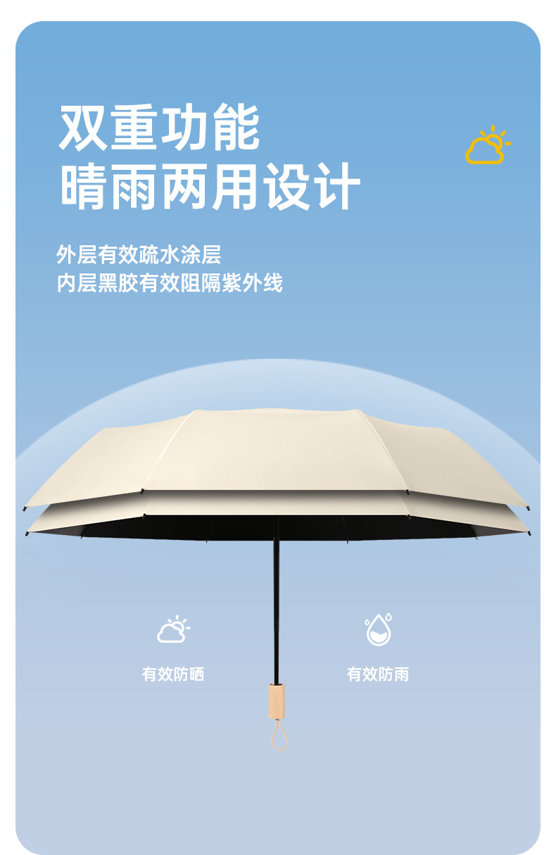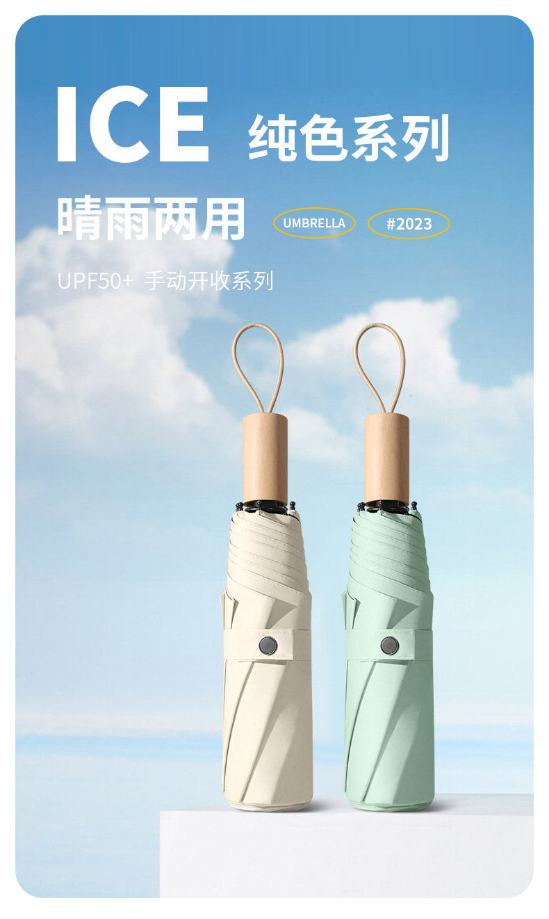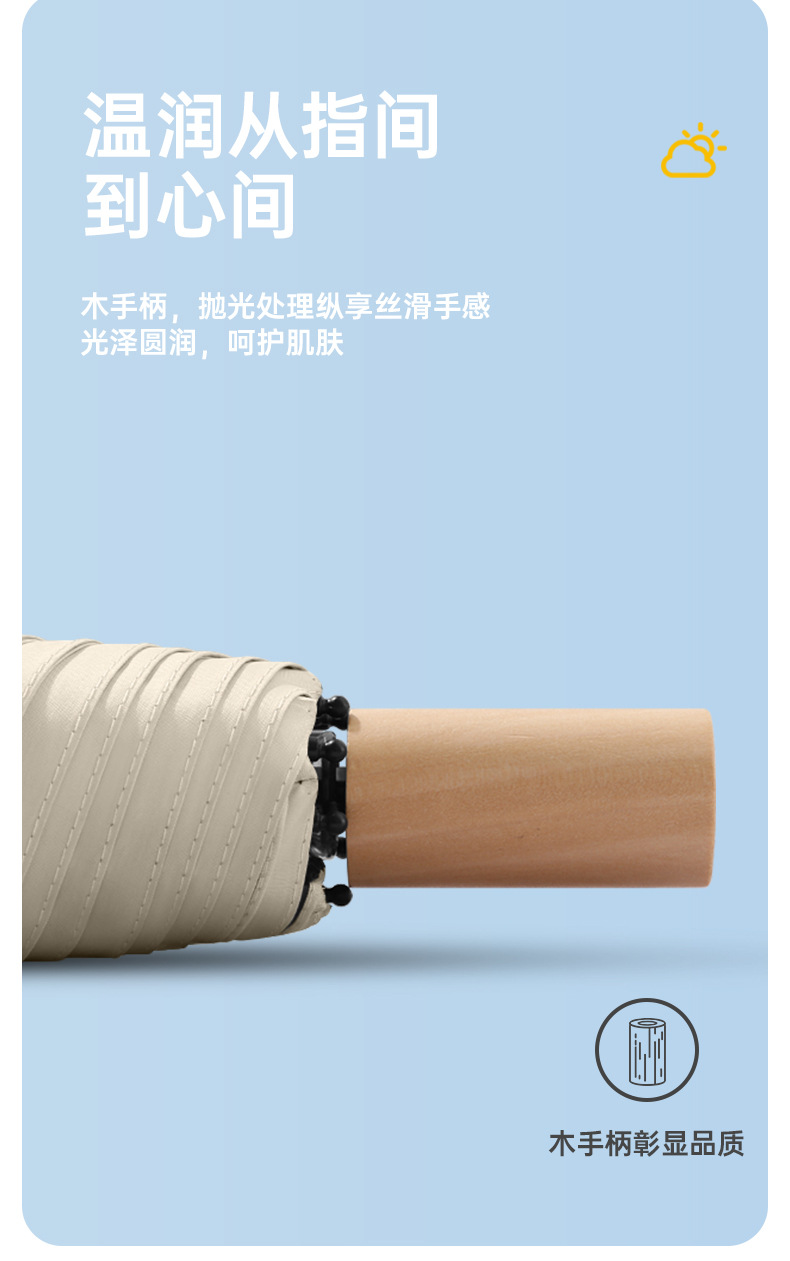 Vinyl sun umbrella wooden handle folding sunshade umbrella large wholesale UV protection sun umbrella vinyl gift umbrella