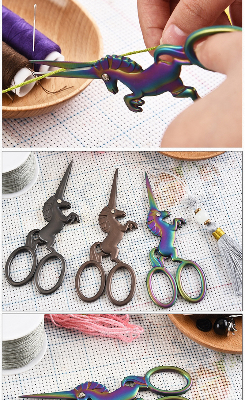 Horse-shaped twelve Zodiac boutique craft scissors stainless steel forged titanium-plated cross stitch tea vintage small scissors