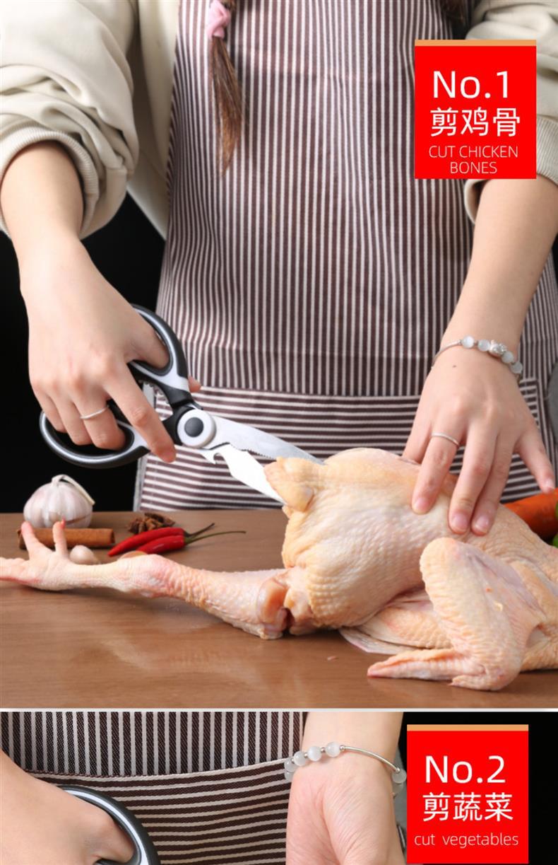 Stainless steel sharp food multi-functional bone advanced fish killing scissors special barbecue scissors kitchen scissors household