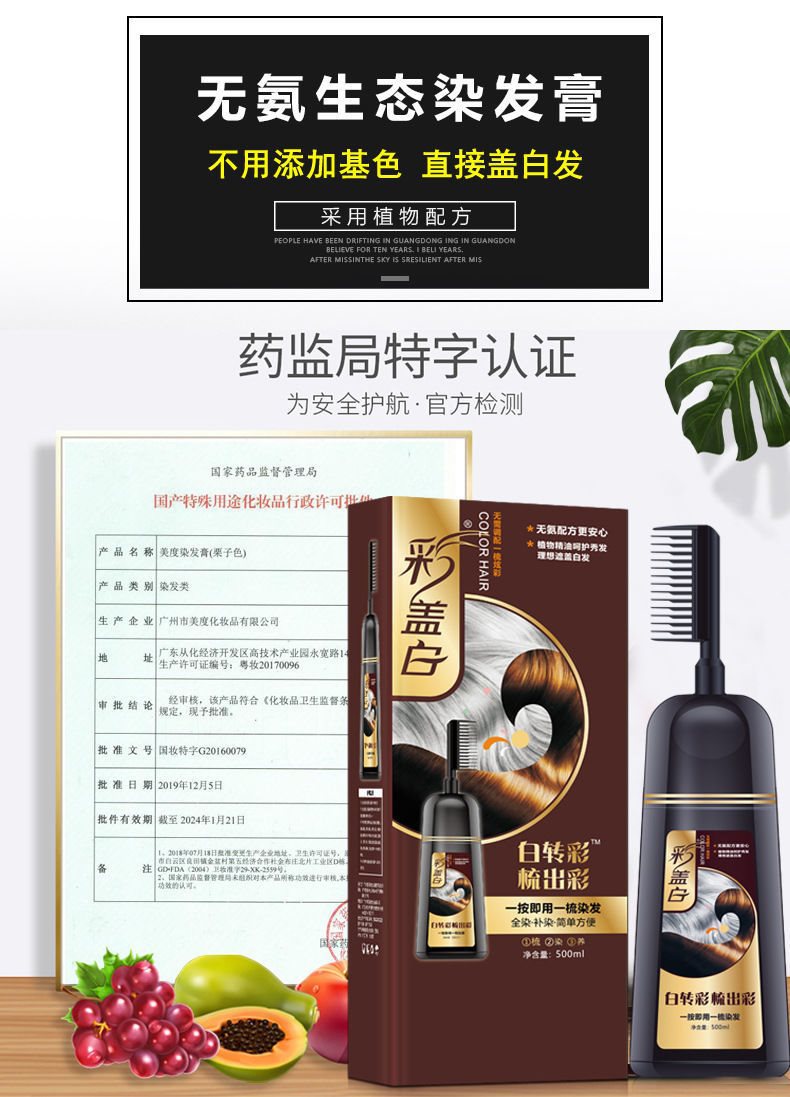 One comb color plant hair dye cream lazy hair dye at home dyed 2021 popular colors colorful White cover white hair