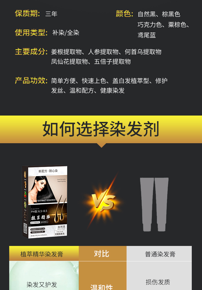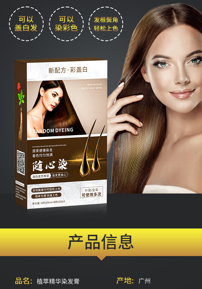 2023 popular color plant hair dye natural black chocolate color hair dye cream non-foam type wholesale