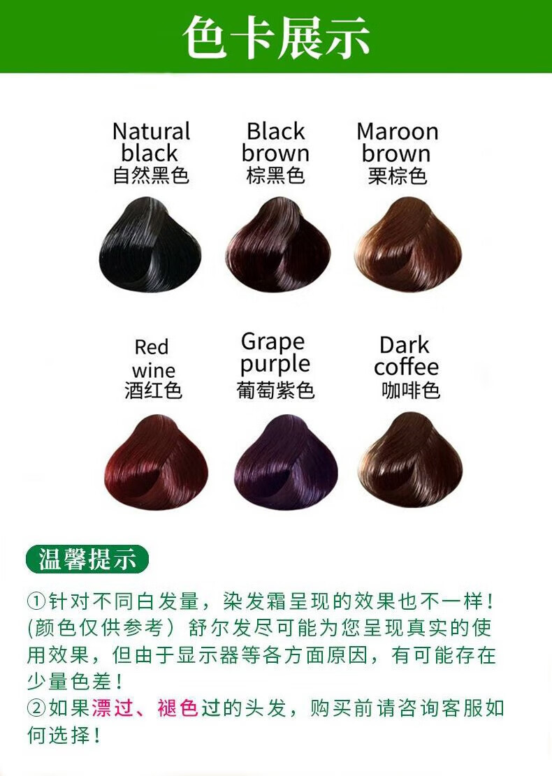 Shuer hair dye natural black brown hair dye cream for men and women available plant extract cover white hair hair dye cream