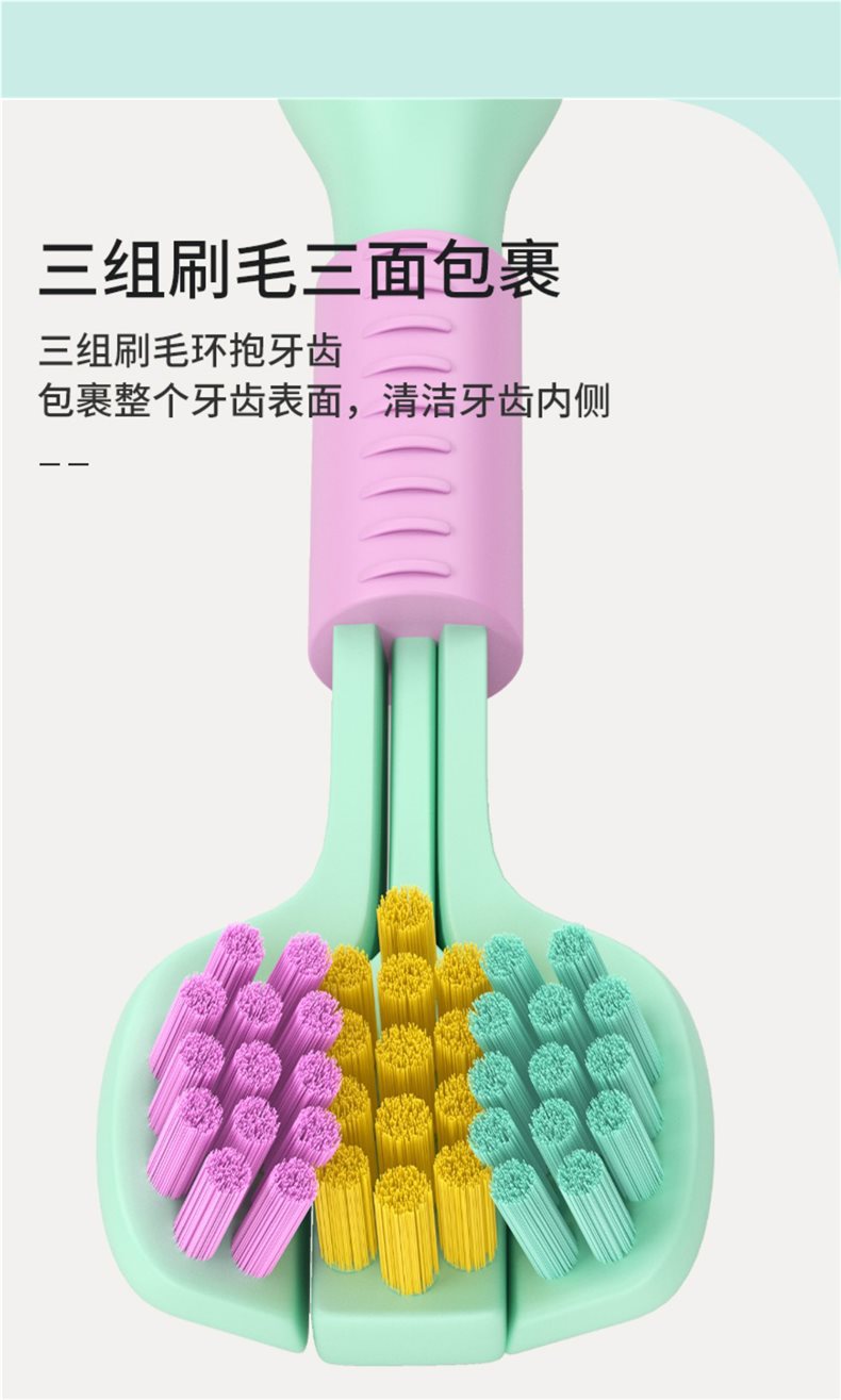 Children and Adults Three-sided Toothbrush Cleaning Teeth Cleaning Family Pack Three-dimensional No Dead Angle Cleaning Soft Hair Three-head Scraping Tongue Coating