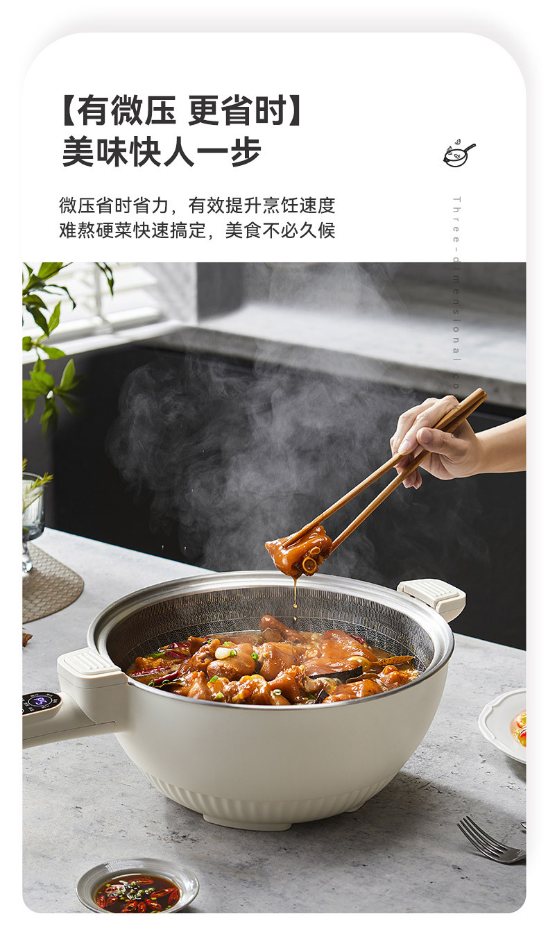 Moto Electric Wok Non-stick Cooking Pan Household Multifunctional Electric Cooker Steaming and Cooking Integrated Pot 6L Electric Pressure Cooker Micro Pressure Pot