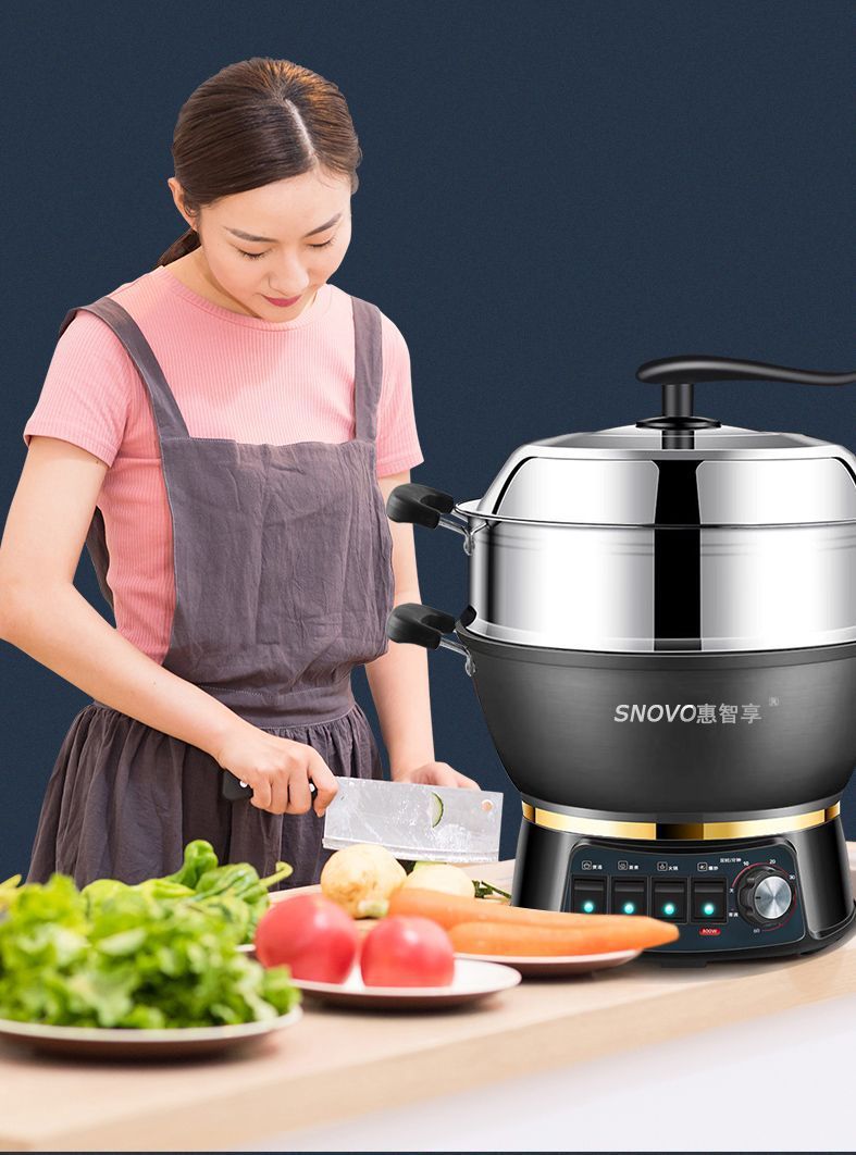 Non-stick pan electric wok household timing multi-function electric cooker electric hot pot cooking and stewing one-piece plug-in cooking