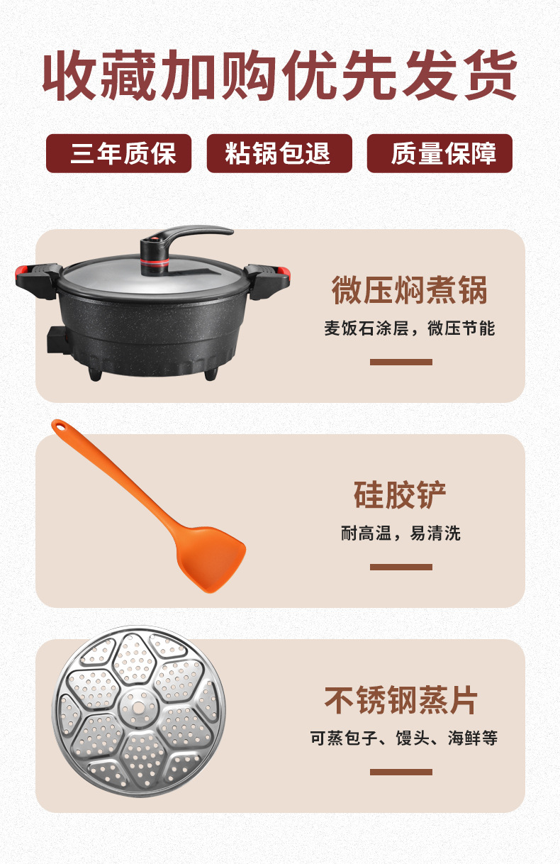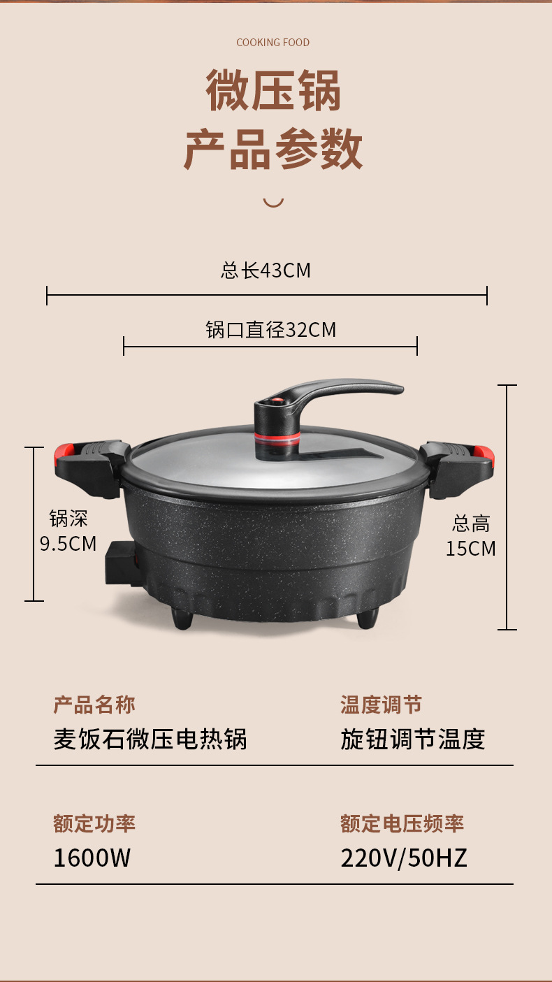 Micro-pressure maifan stone multi-functional non-stick pan integrated electric cooker electric hot pot electric cooker household double-ear micro-pressure soup pot