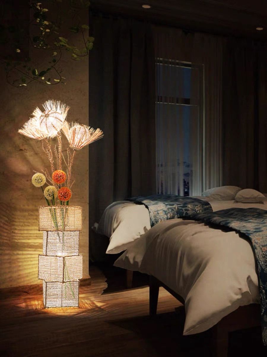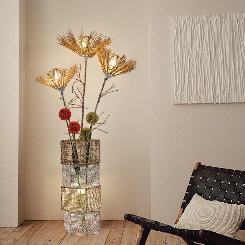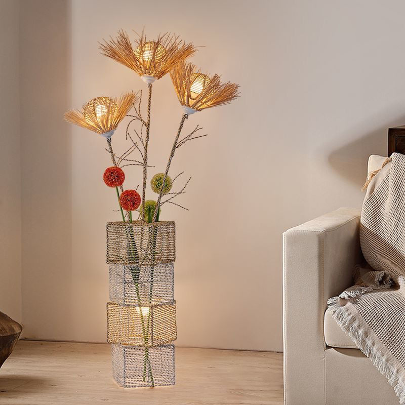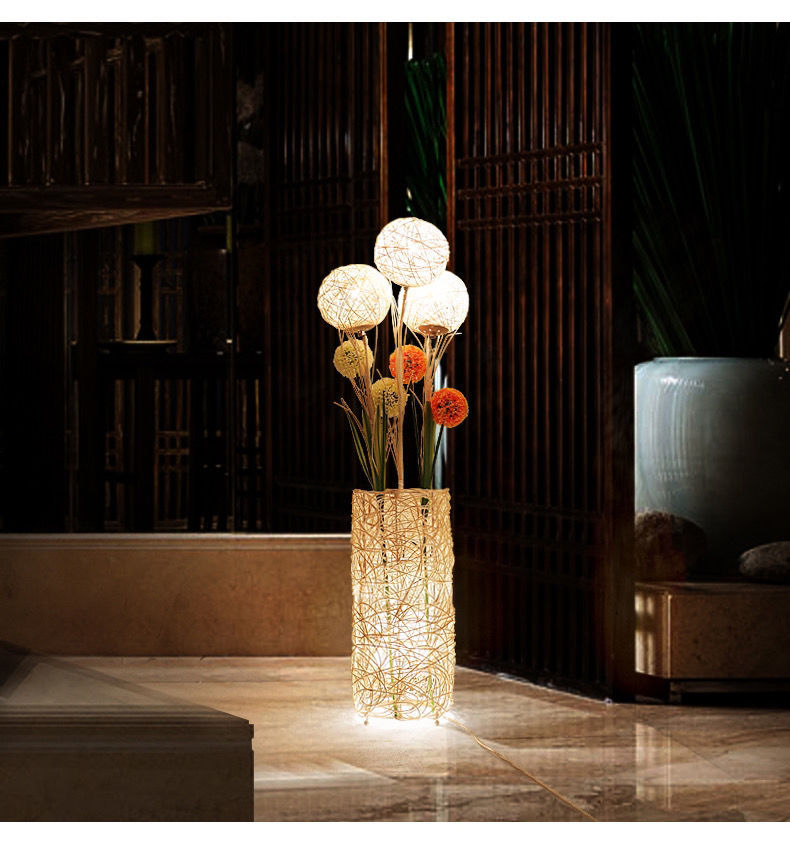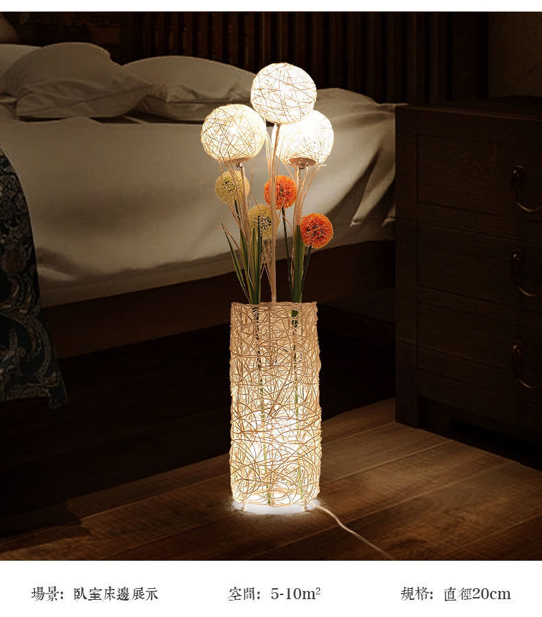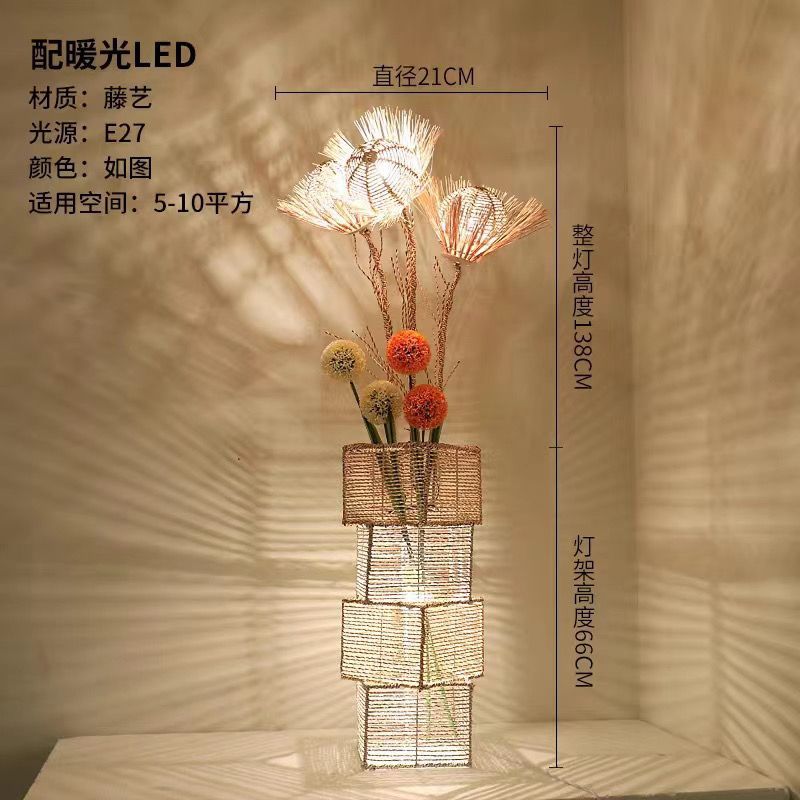 Chinese Style Internet Celebrating Woven Floor Lamp Bedroom Living Room Creative Rattan Art Floor Lamp Art Rattan Floor Lamp Japanese Style