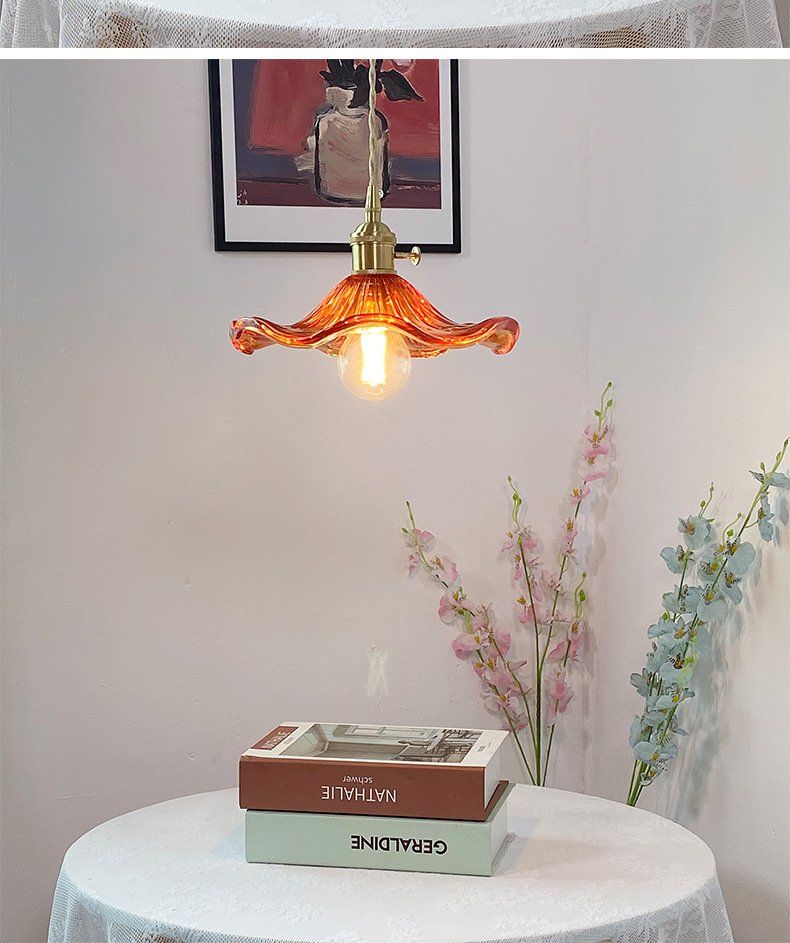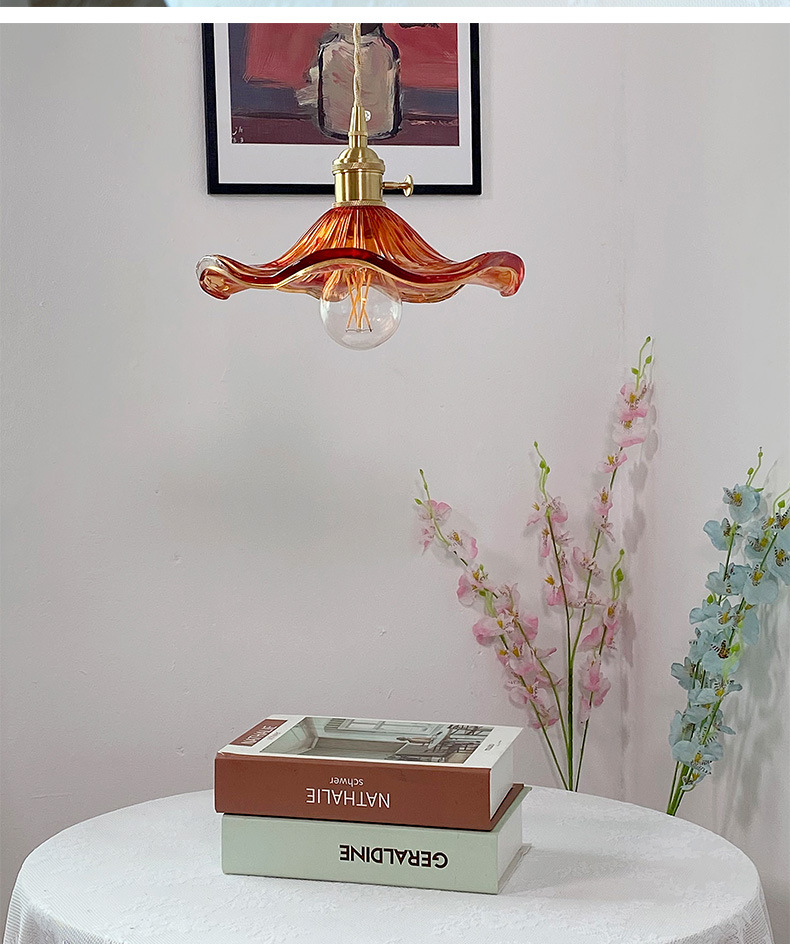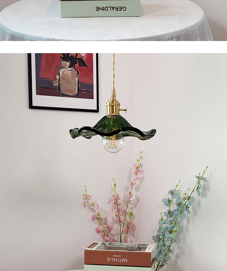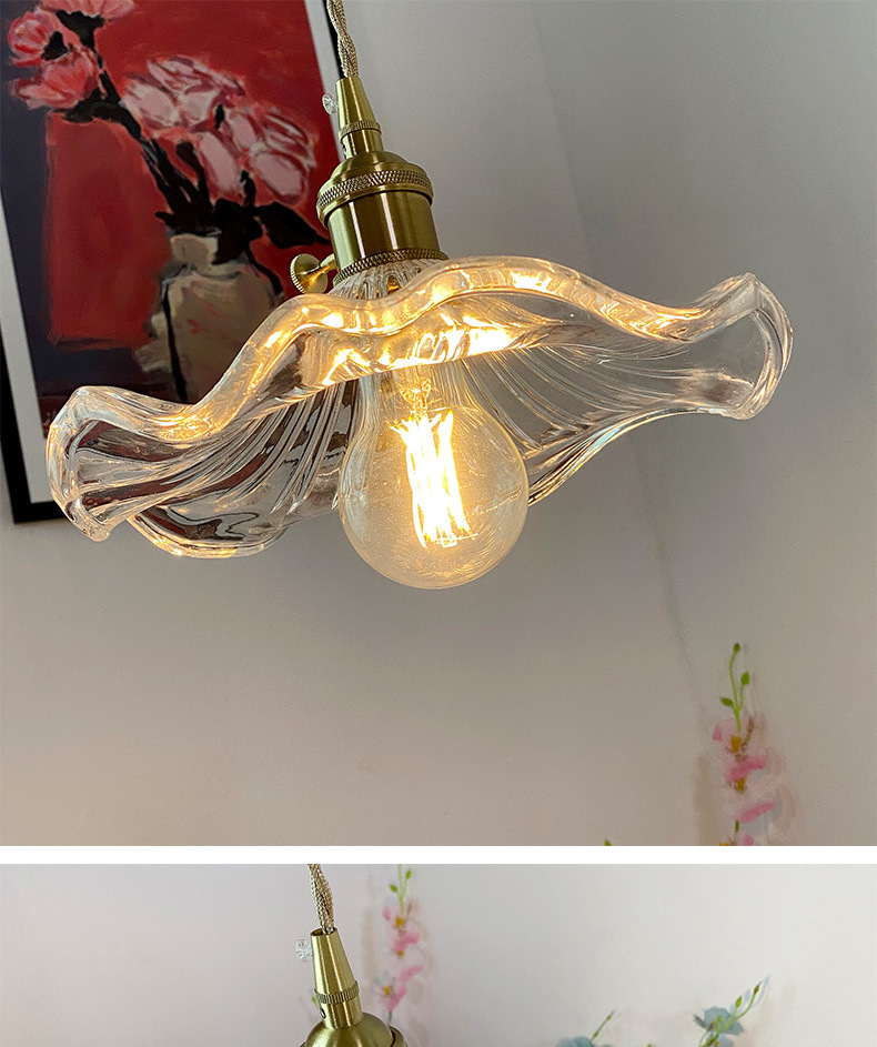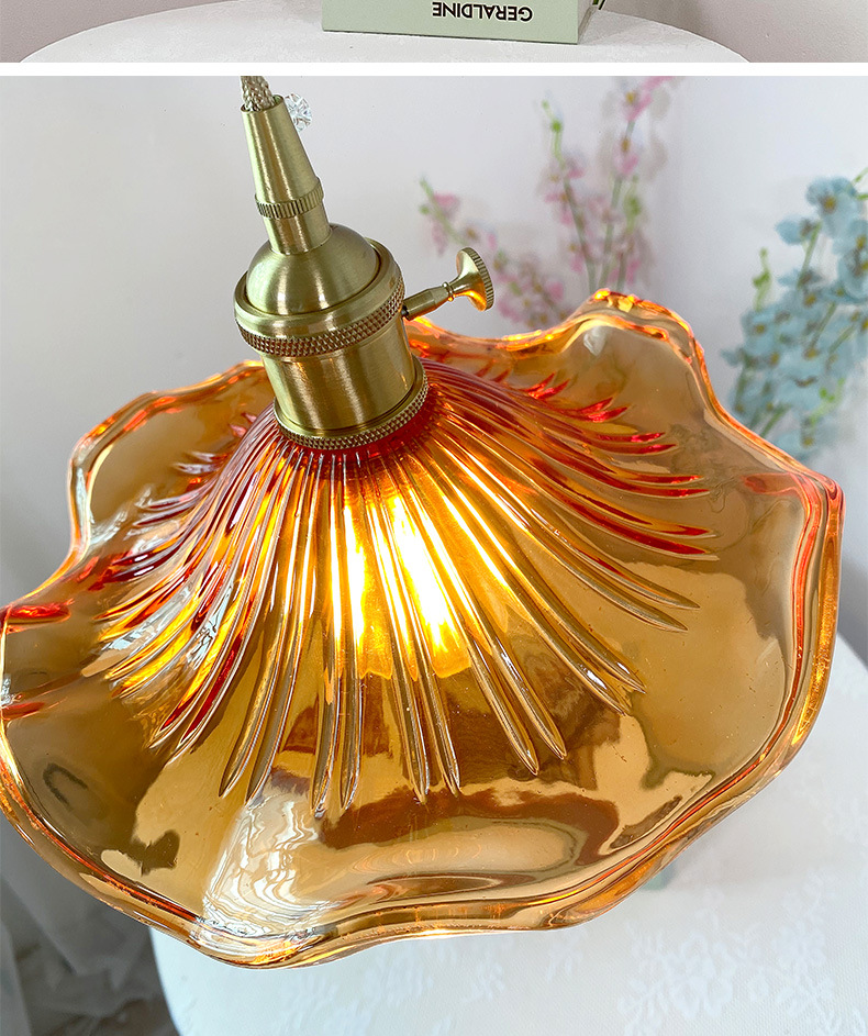 Brass Nordic Japanese Style Simple Niche Glass Bedroom Restaurant Bar Homestay Entrance Single Head Artistic Vintage Chandelier