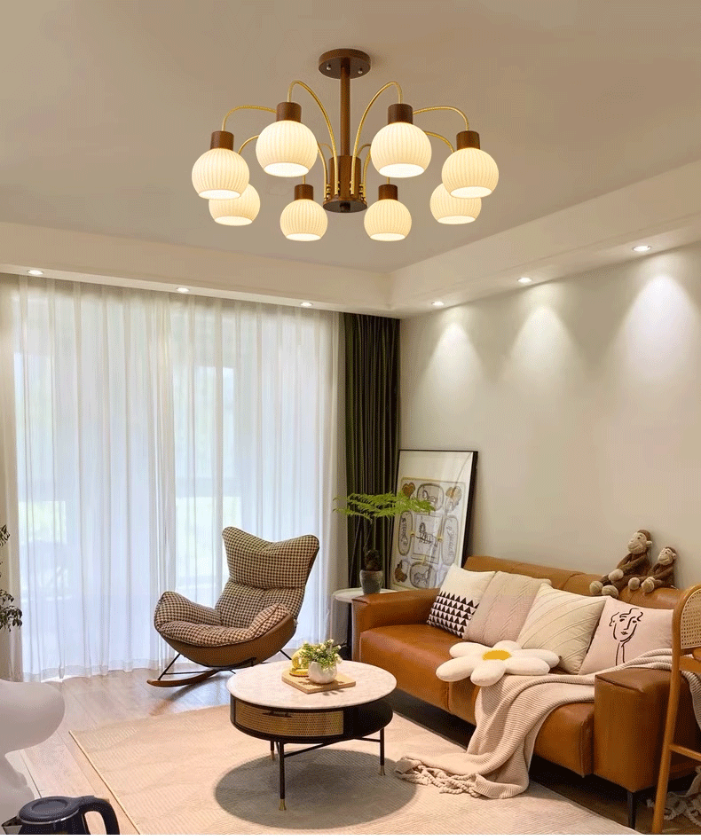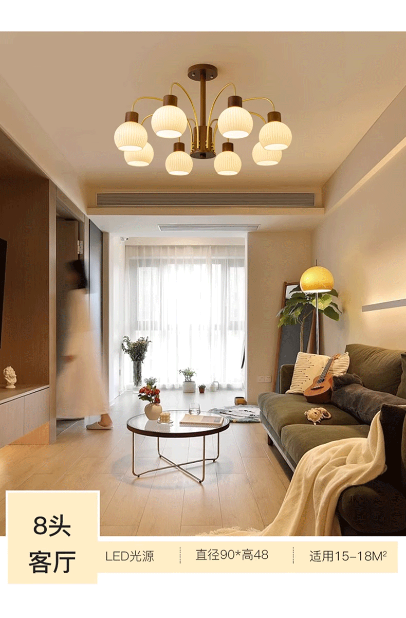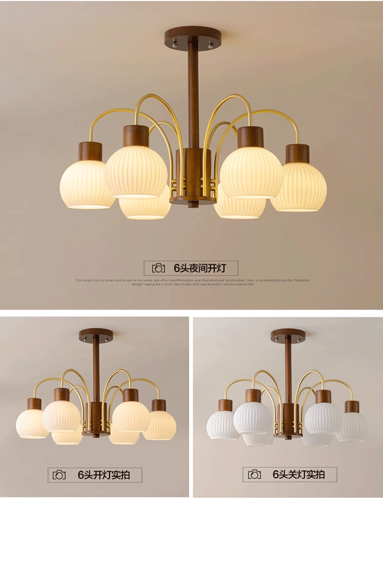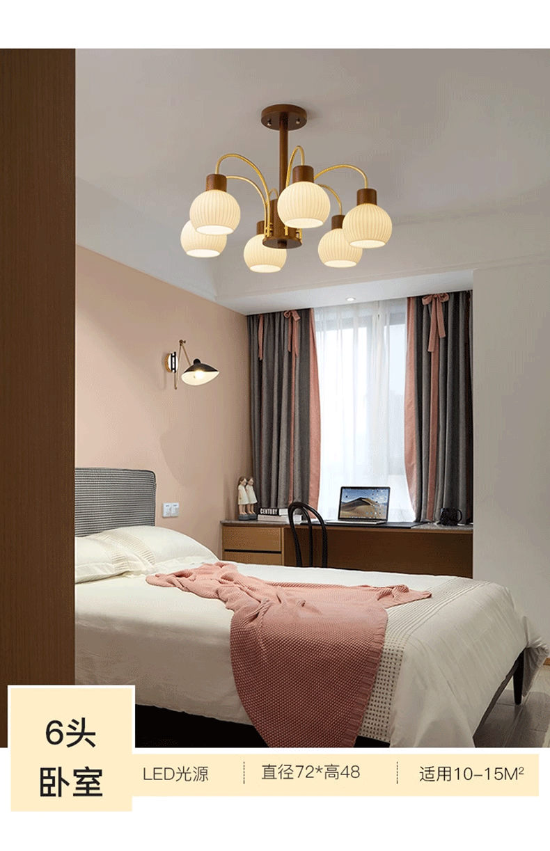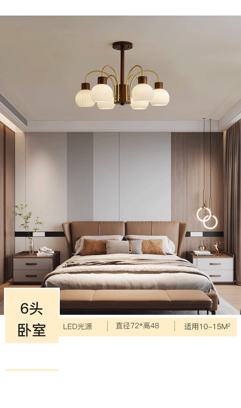 Mid-ancient chandelier new Chinese style light luxury retro living room chandelier main lamp simple bedroom dining room lamp walnut color wooden lamp