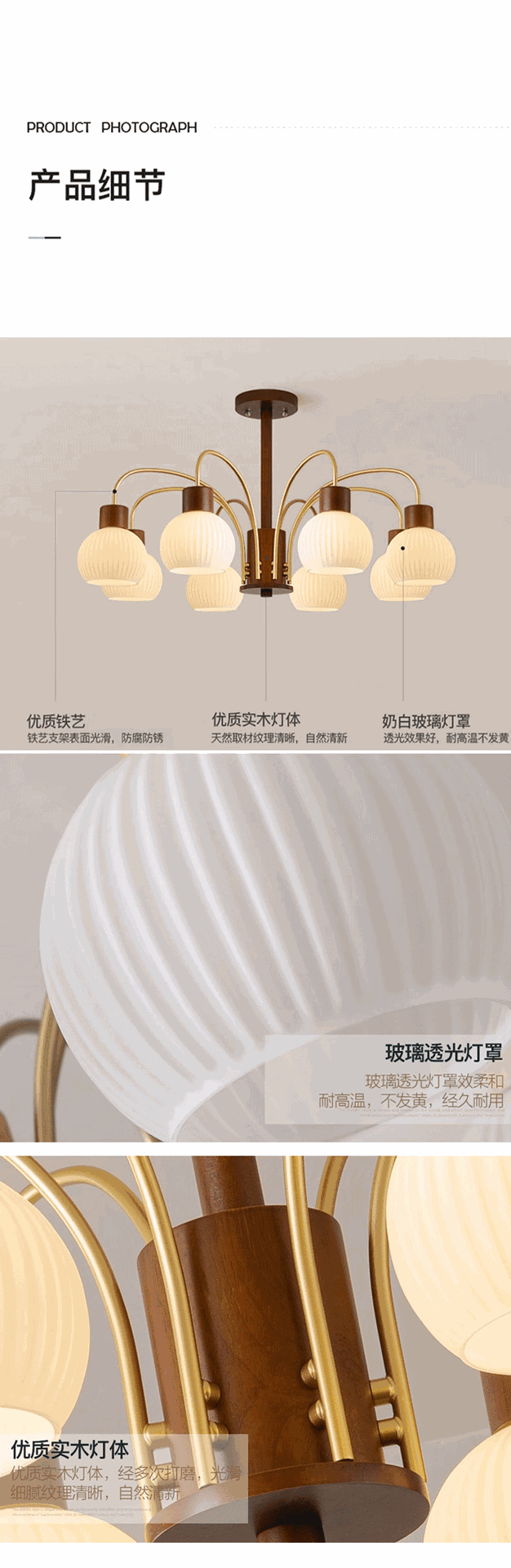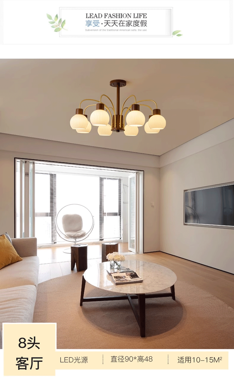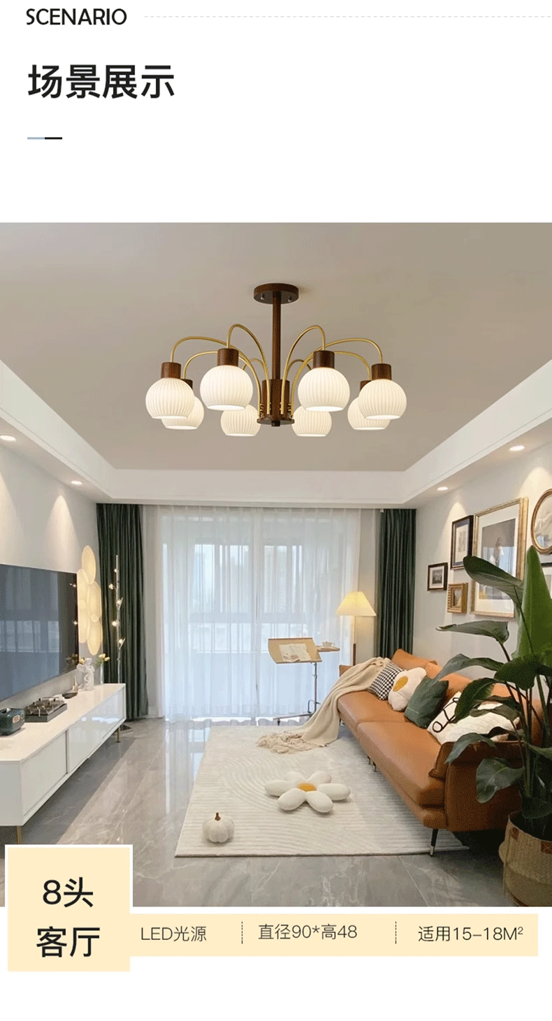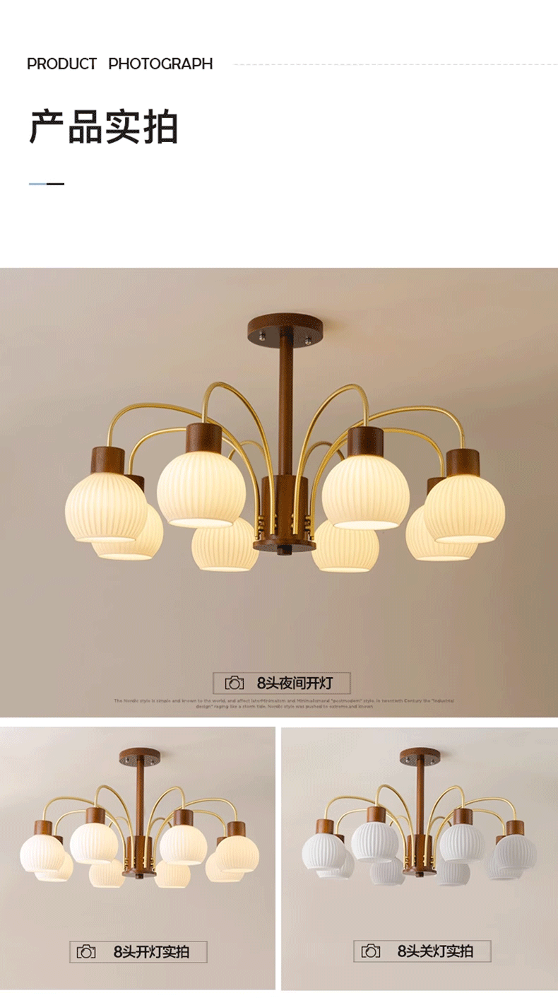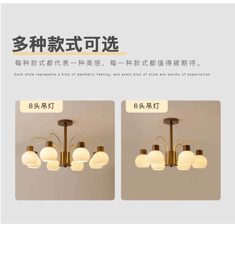 Mid-ancient chandelier new Chinese style light luxury retro living room chandelier main lamp simple bedroom dining room lamp walnut color wooden lamp