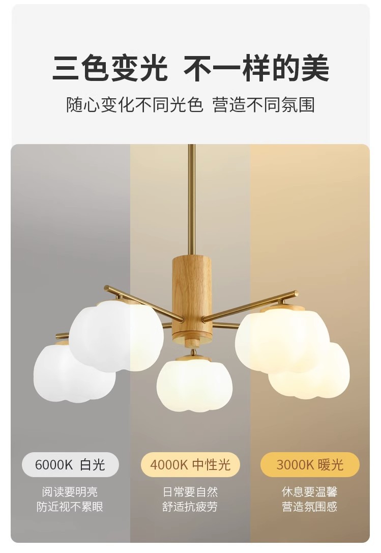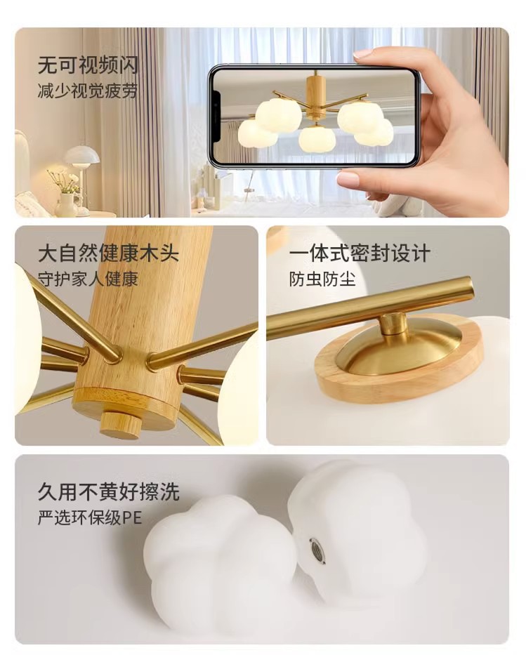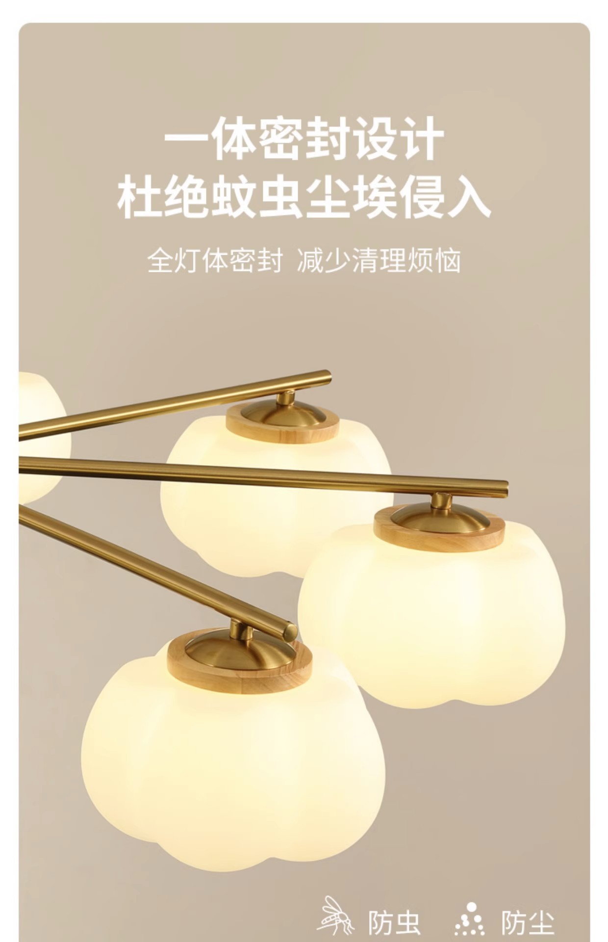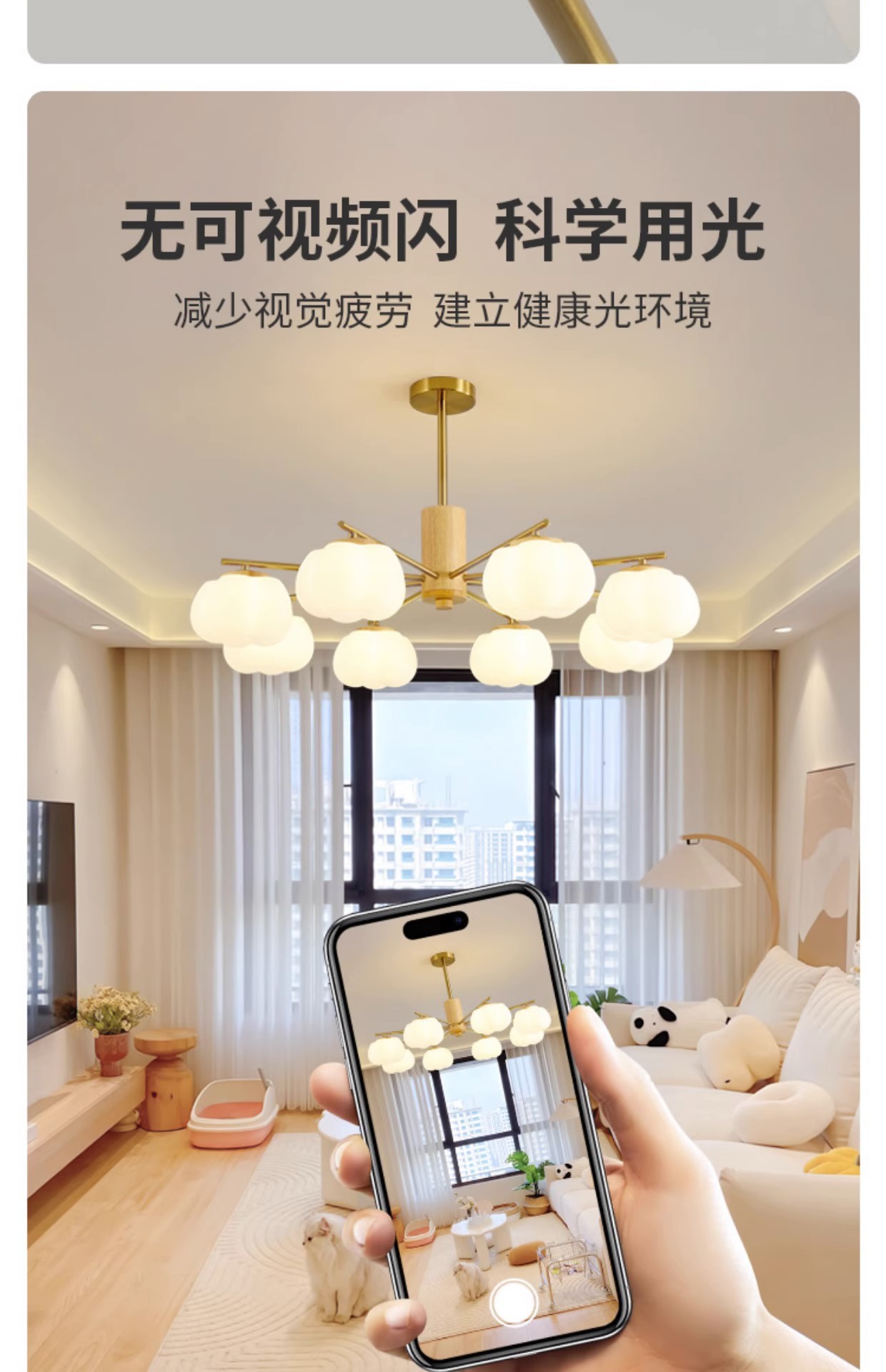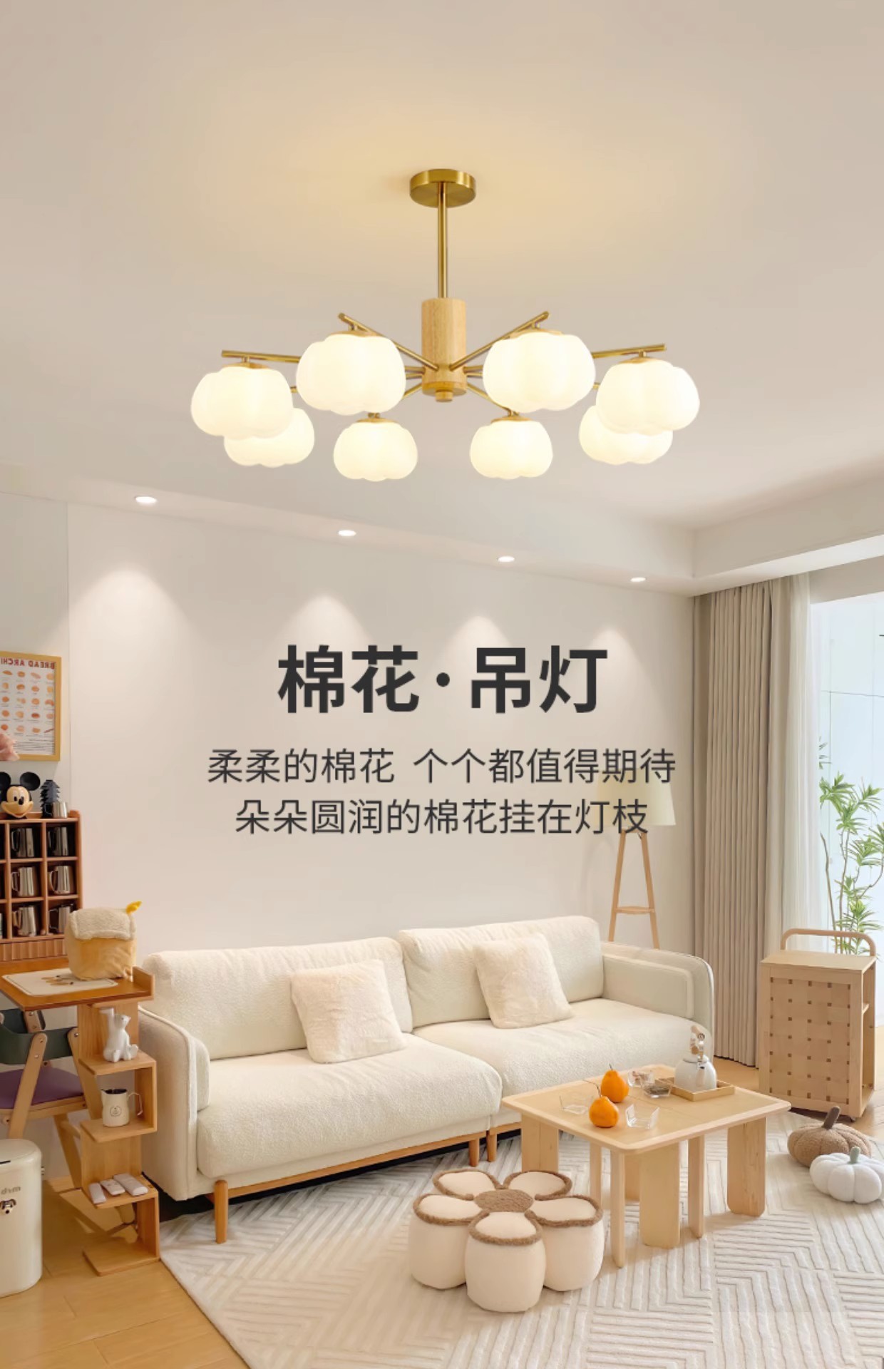 Living room chandelier log cream style Guangdong Zhongshan lamps whole house package combination Hall main lamp cotton Persimmon lamp