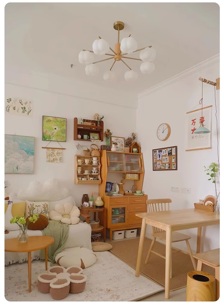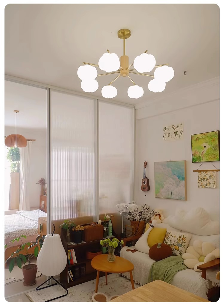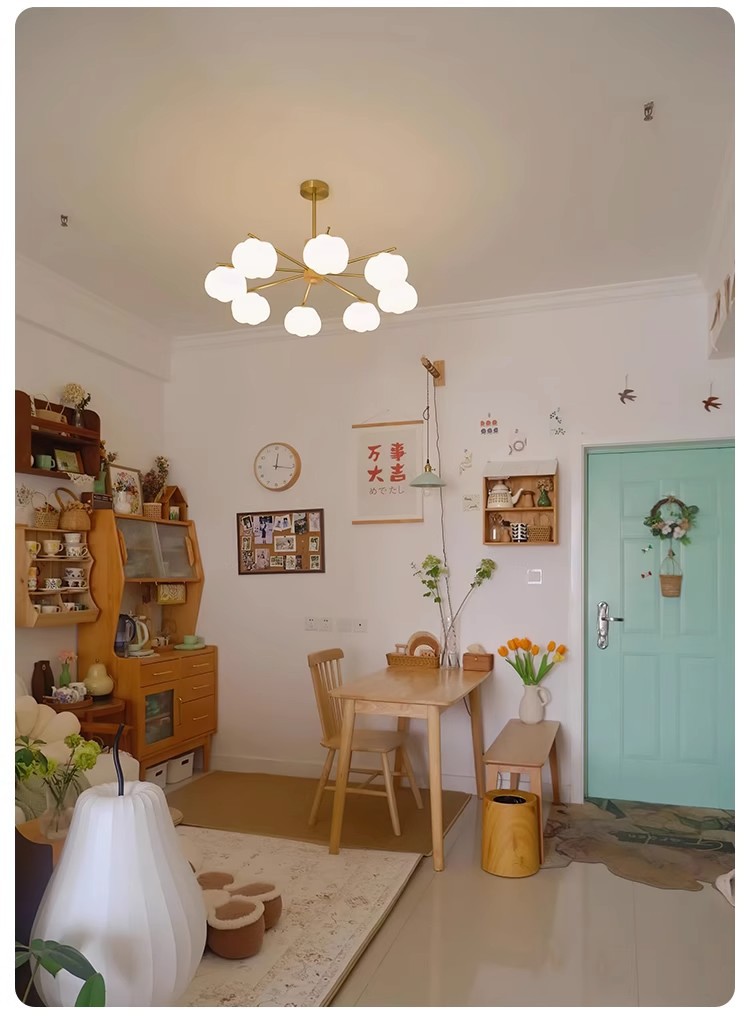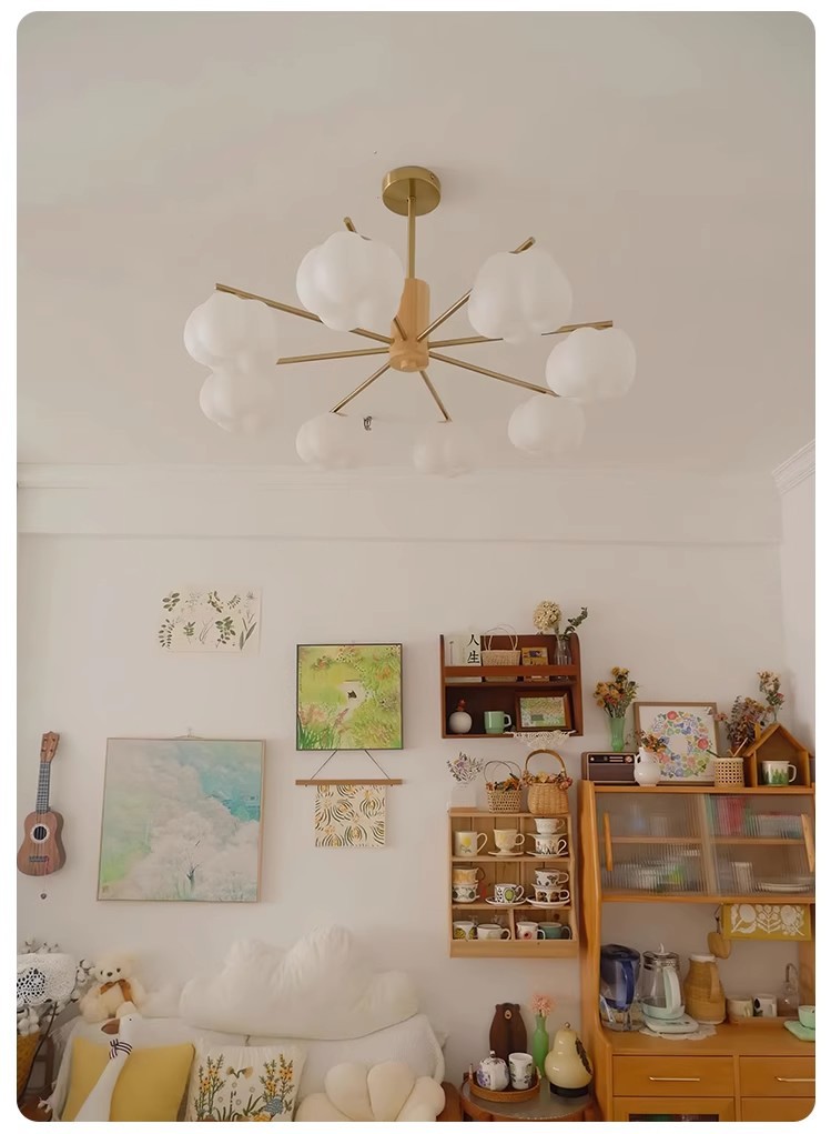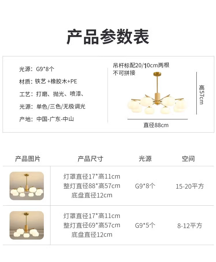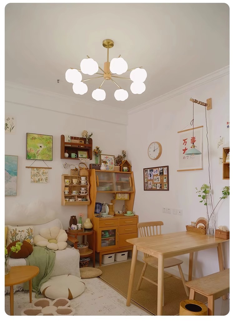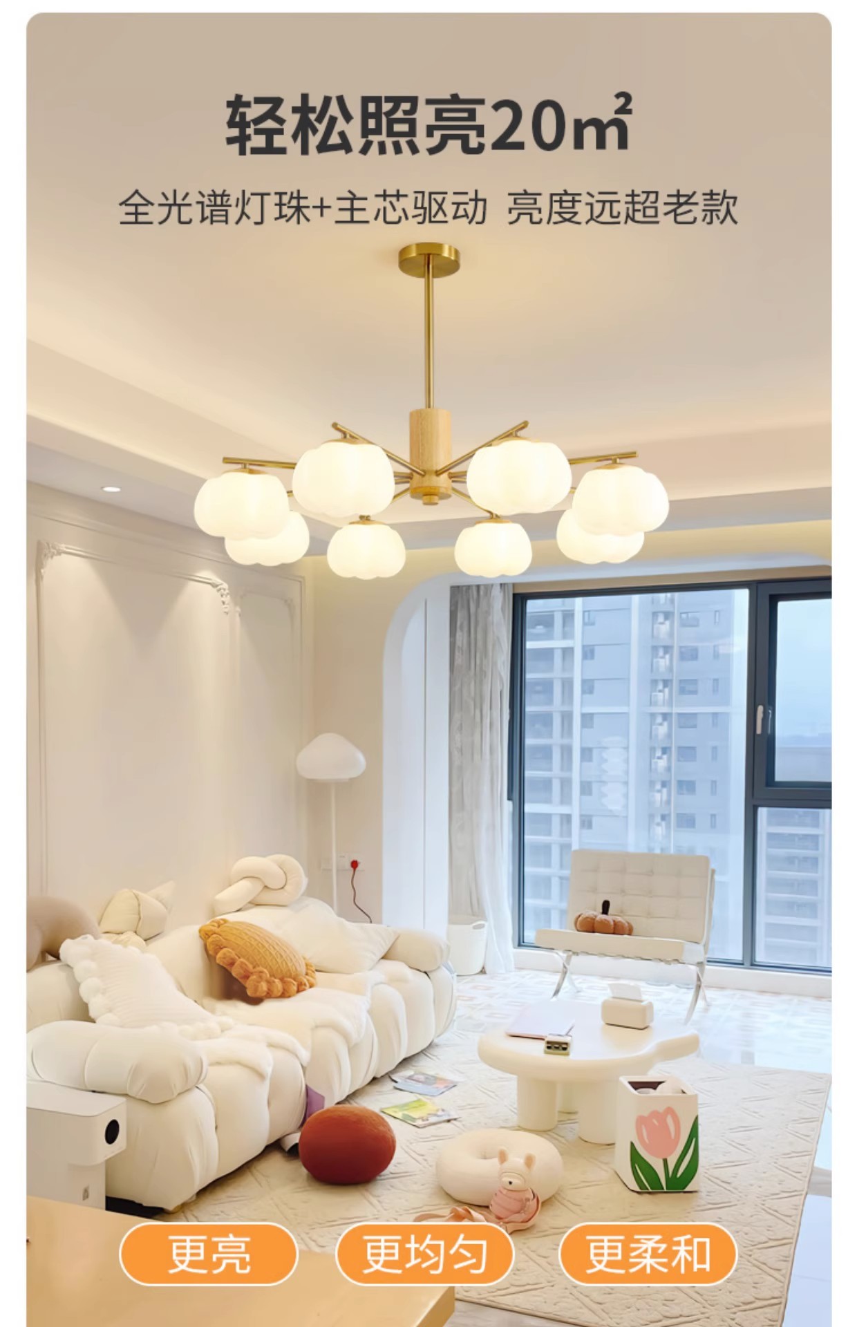 Living room chandelier log cream style Guangdong Zhongshan lamps whole house package combination Hall main lamp cotton Persimmon lamp