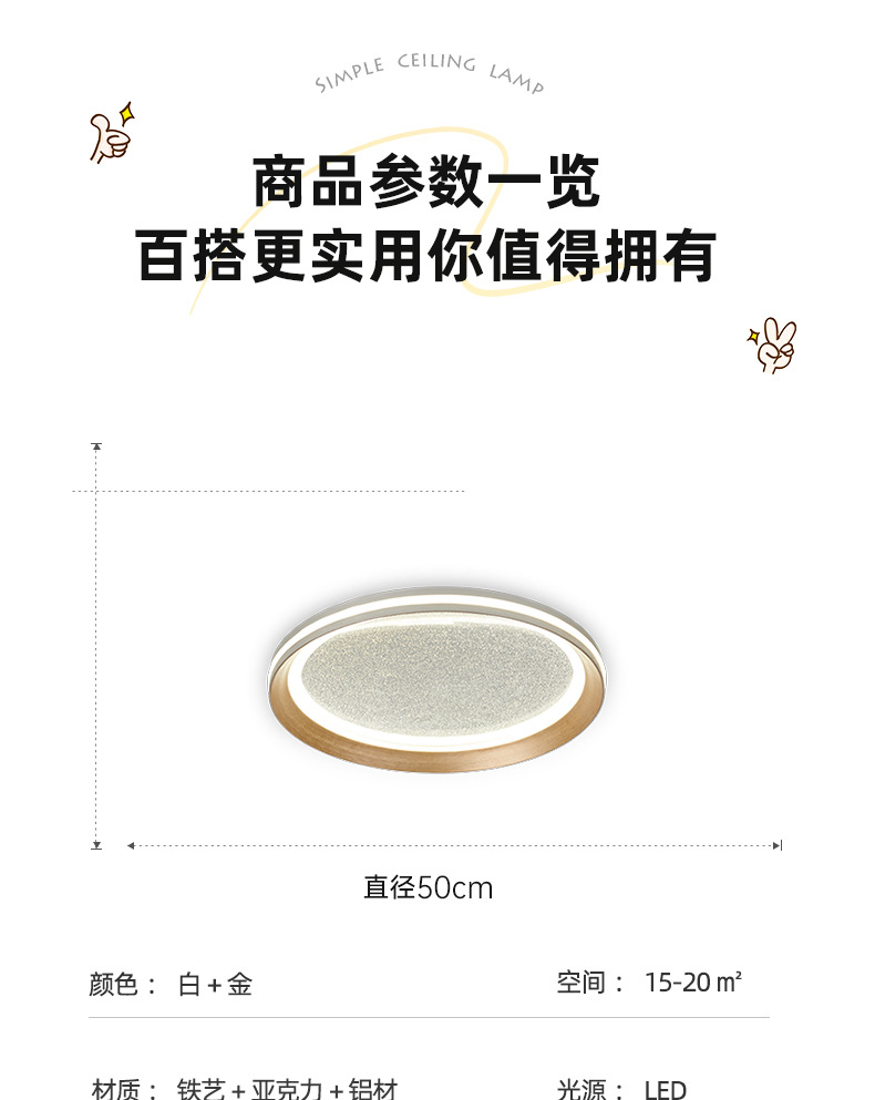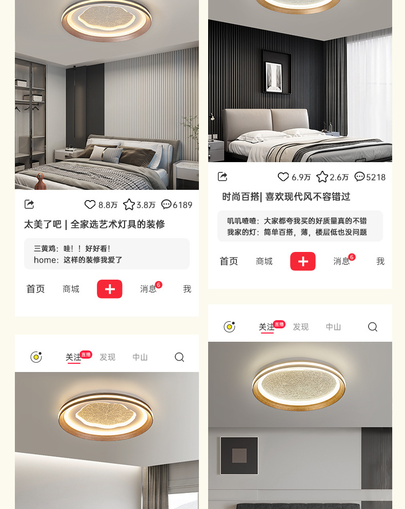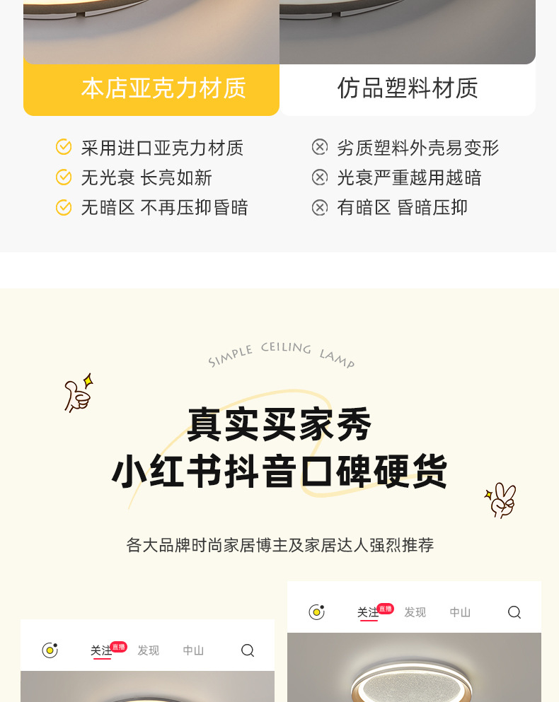 LED Full Spectrum Non-stroboscopic Living Room Lamp Ceiling Lamp Simple Modern Bedroom Study Intelligent Eye Protection Zhongshan Lamps