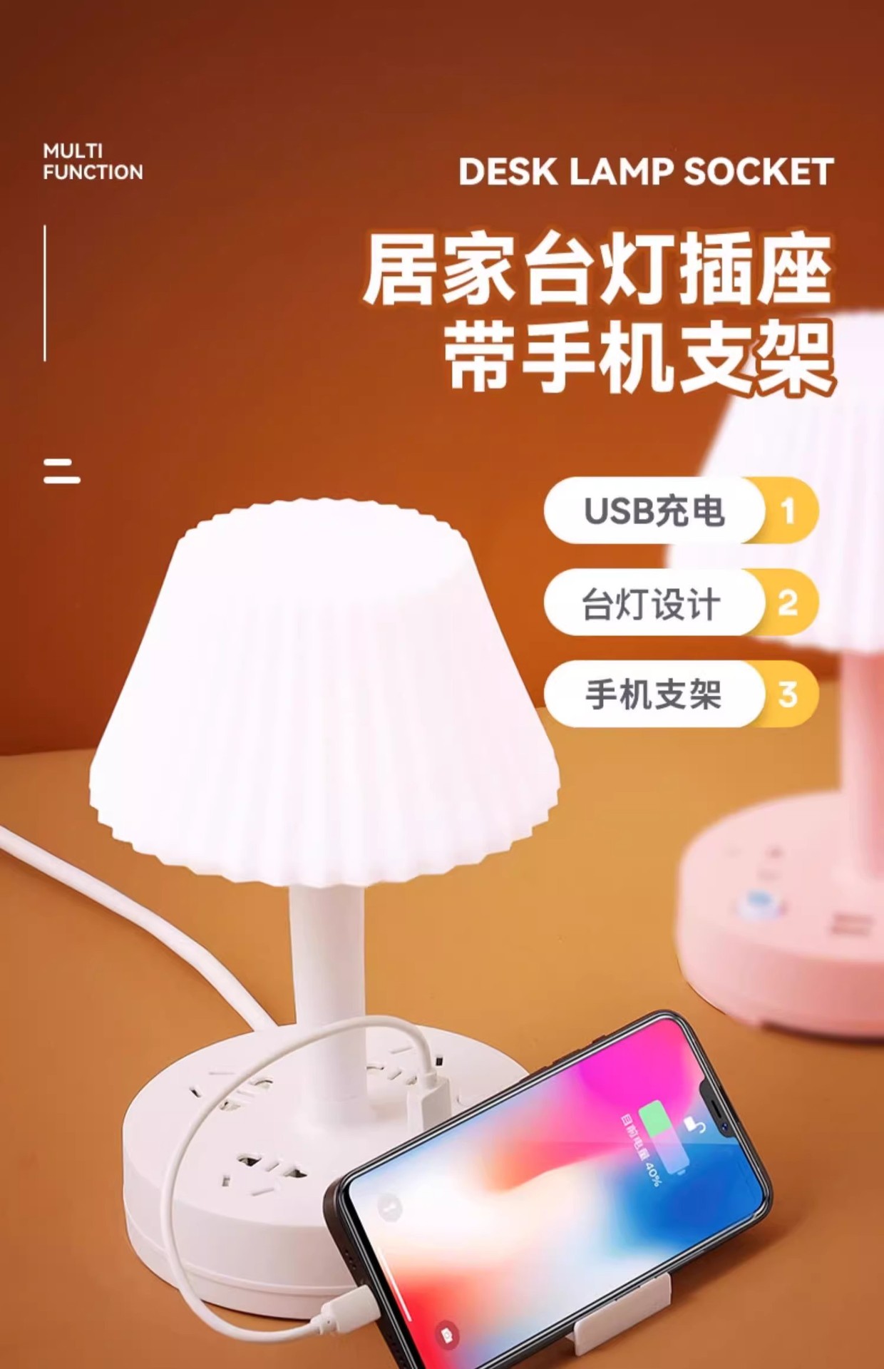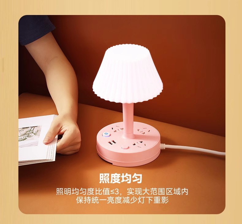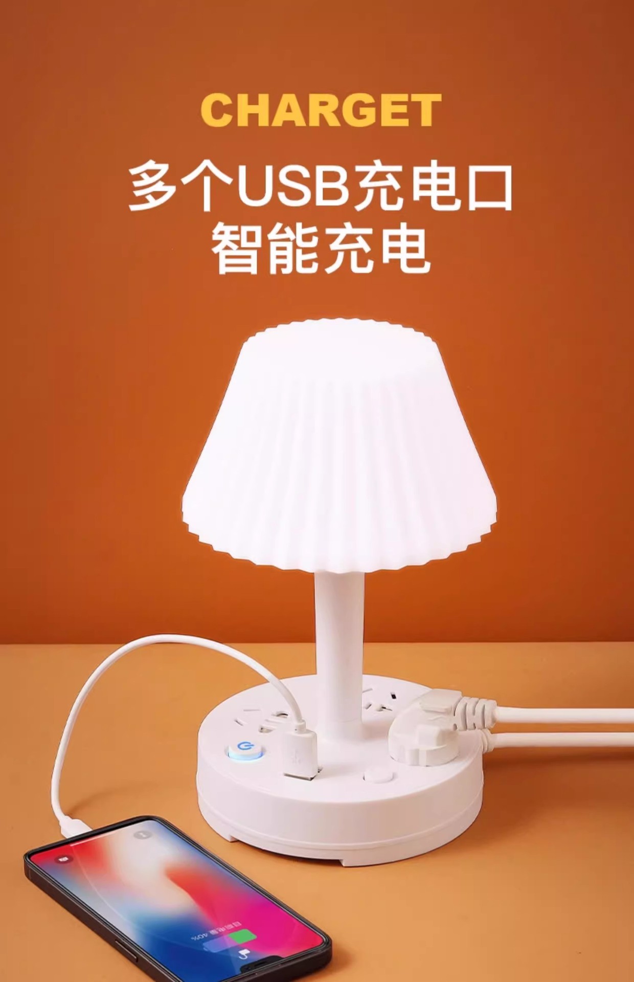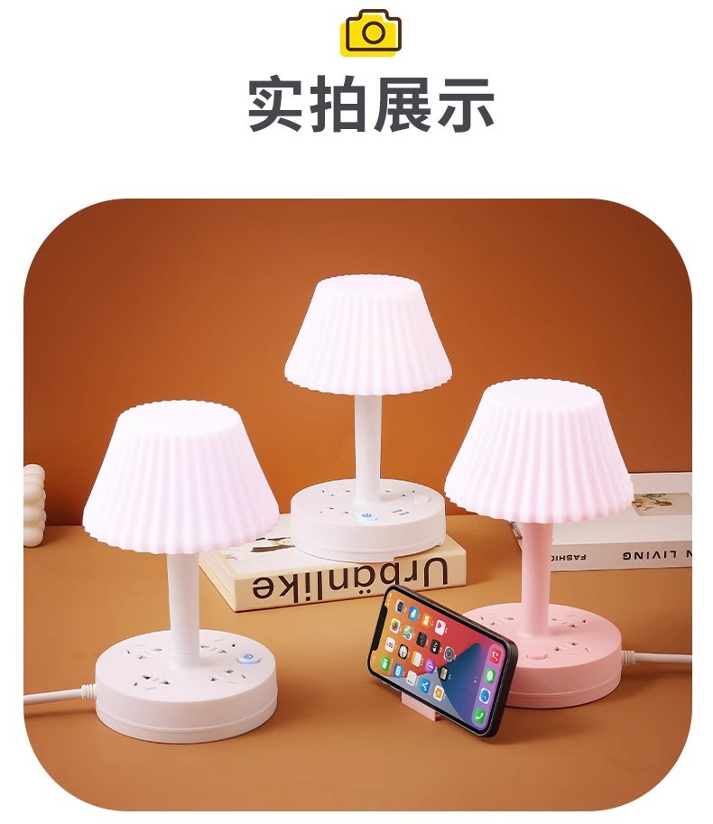 Bedside Table Table Lamp Socket Creative Lamp Multifunctional USB Porous Plug-in Strip with Cable Home Lamp Bedside Nightlight