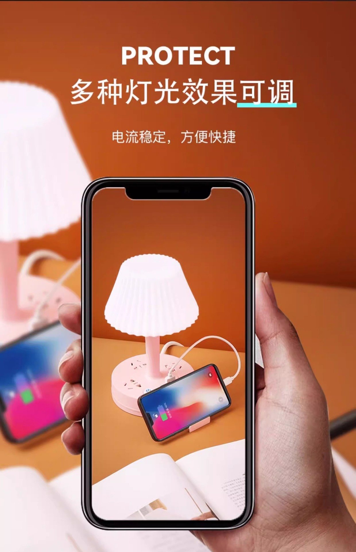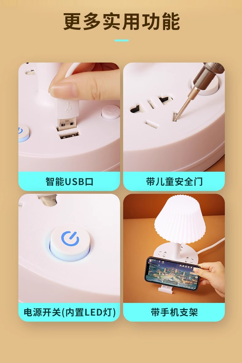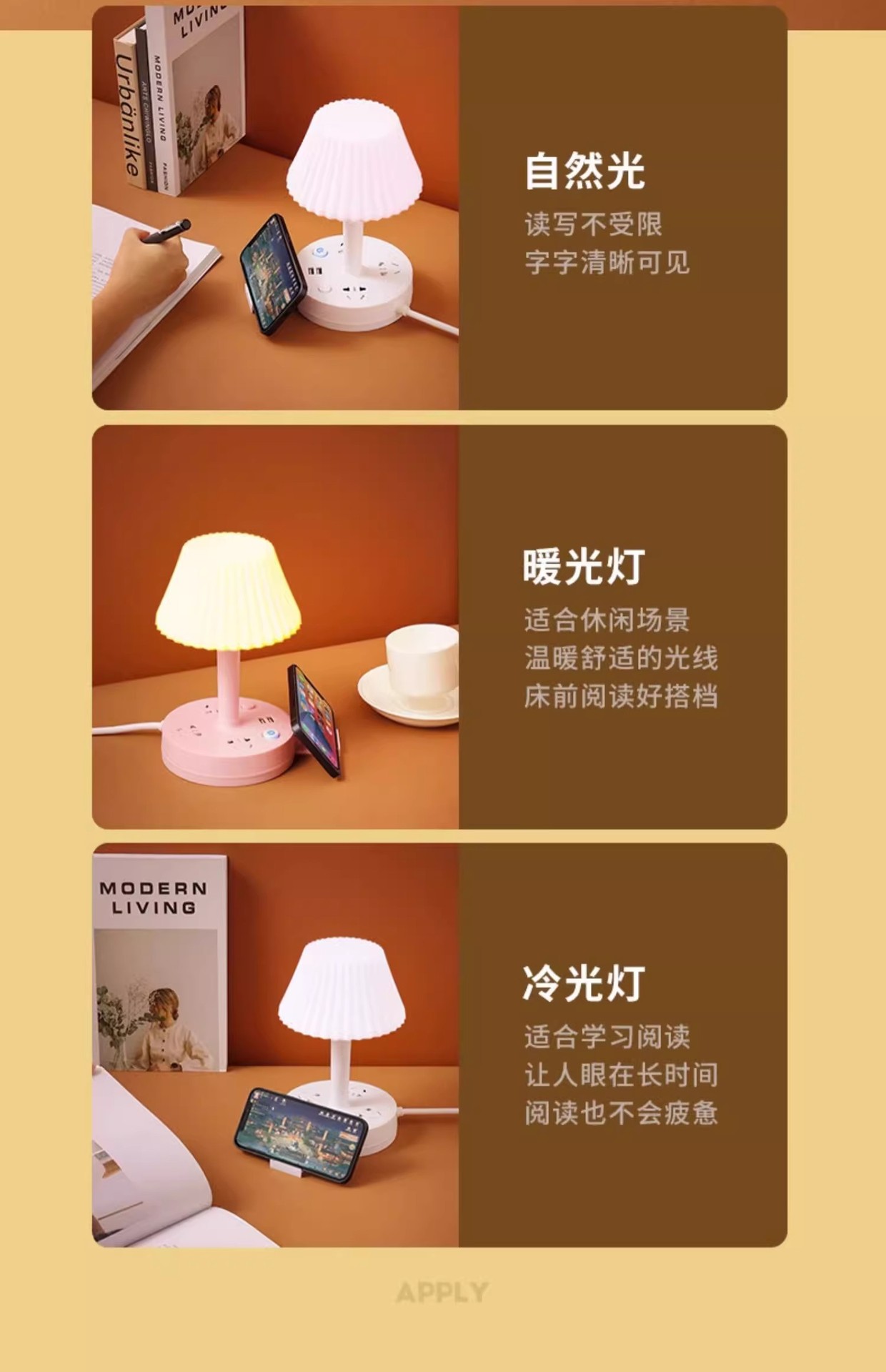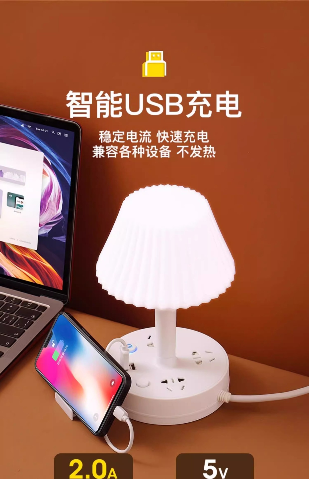 Bedside Table Table Lamp Socket Creative Lamp Multifunctional USB Porous Plug-in Strip with Cable Home Lamp Bedside Nightlight