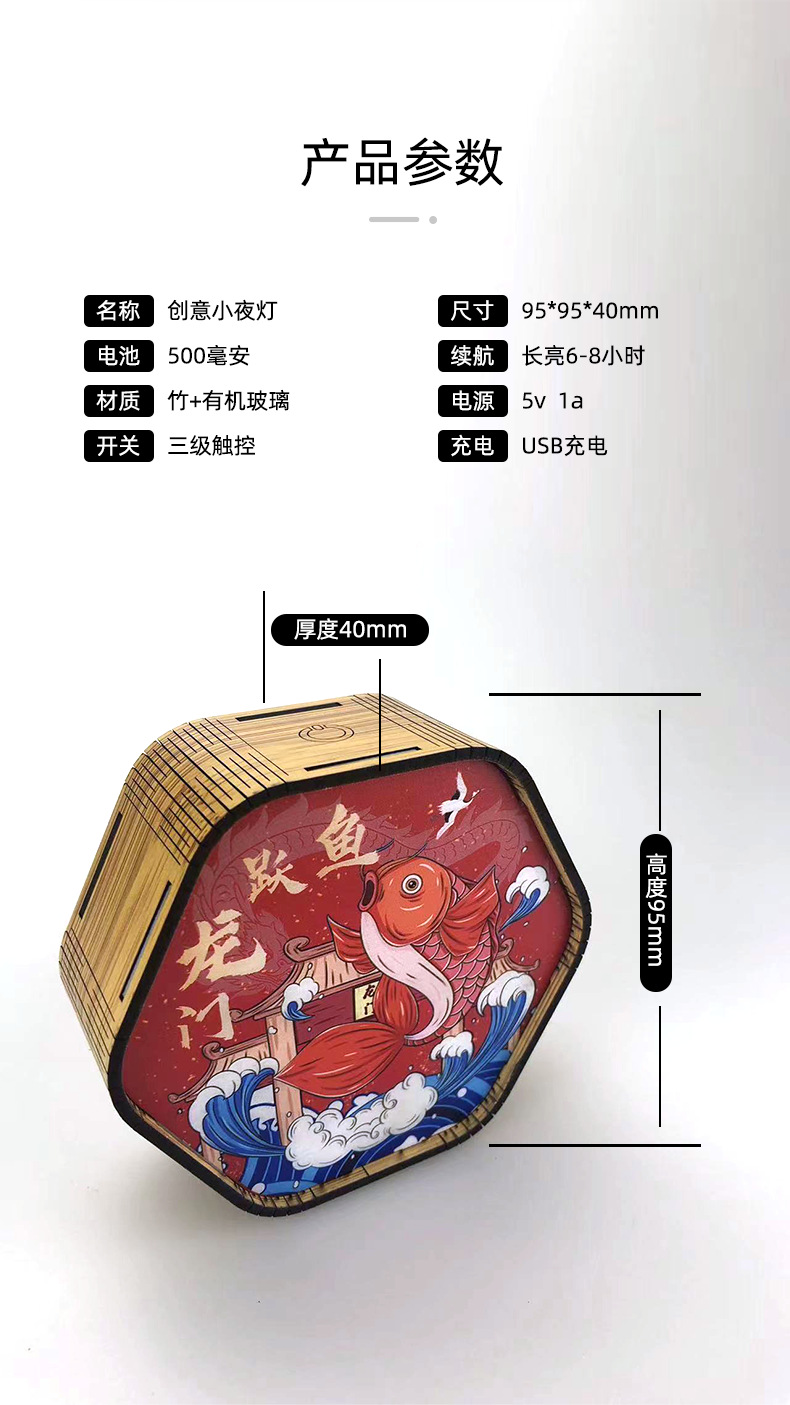 Creative night light fish leap Longmen to be No. 1 night light graduation season gifts for students bamboo and wood ornaments night light