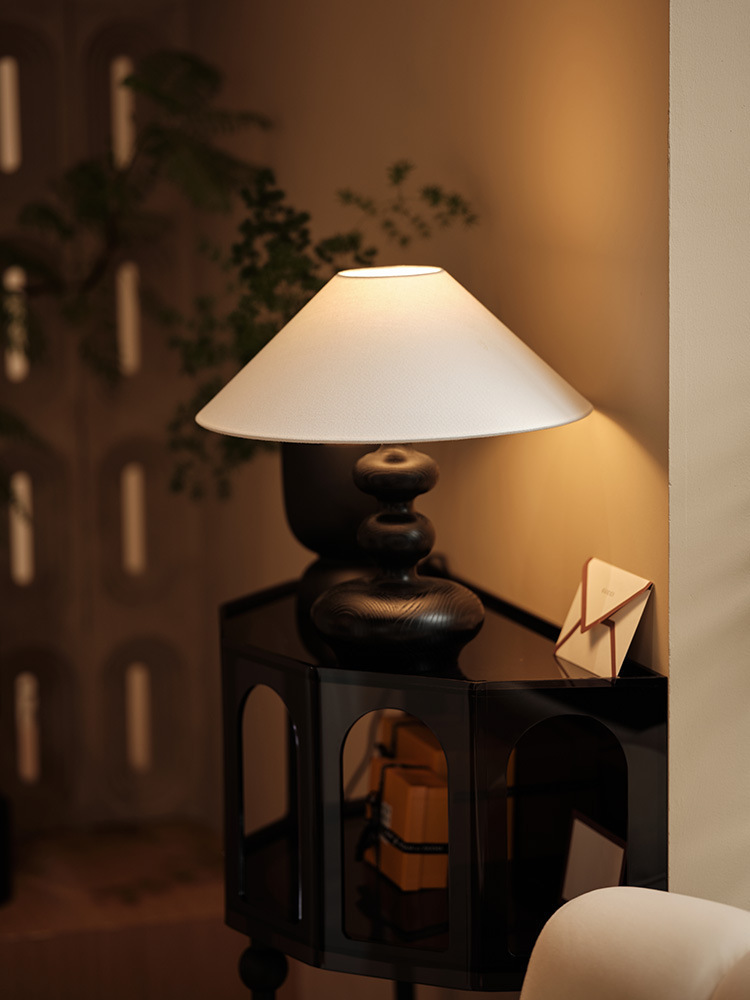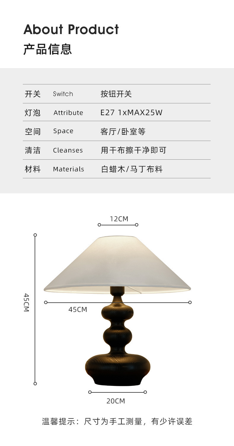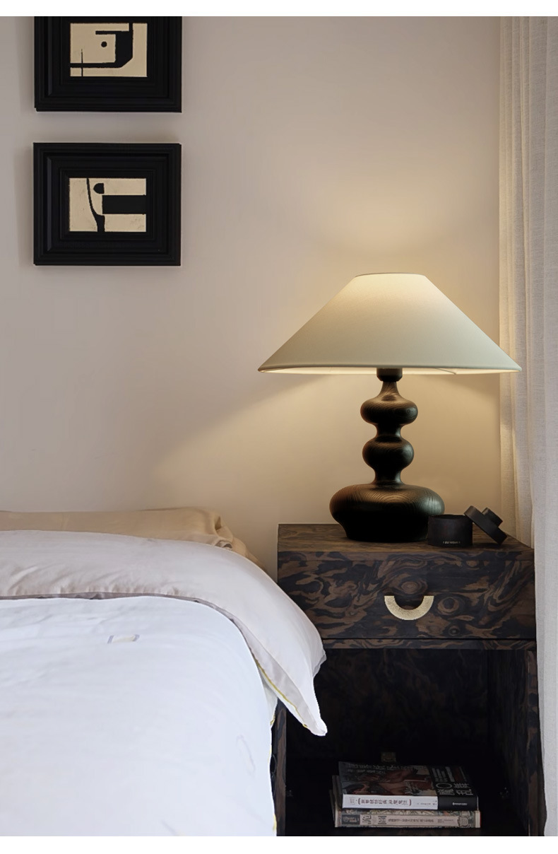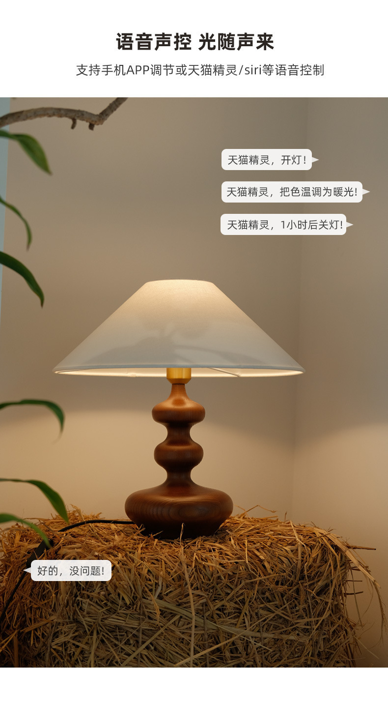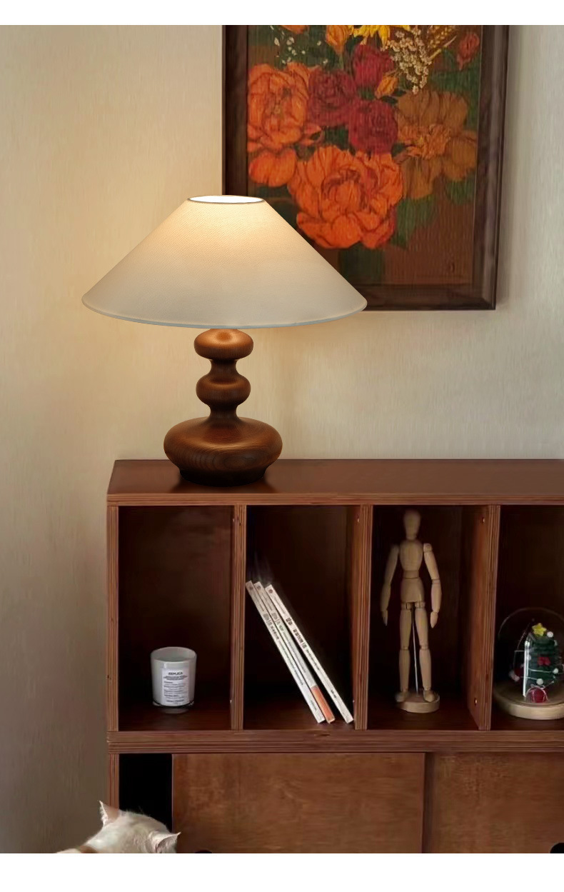 French retro mid-ancient walnut color table lamp bedroom New Chinese style quiet style designer master bedroom solid wood bedside lamp