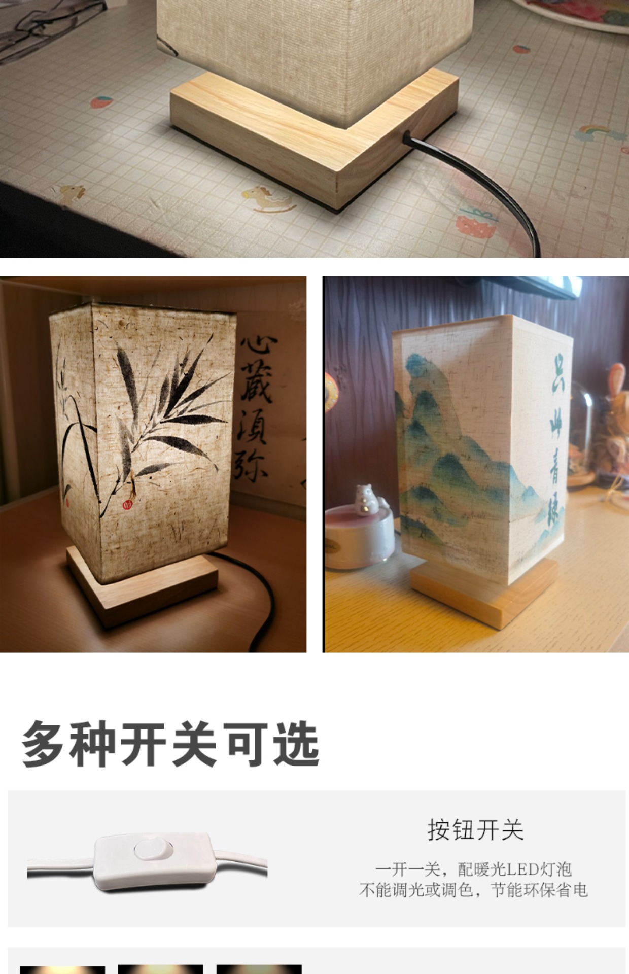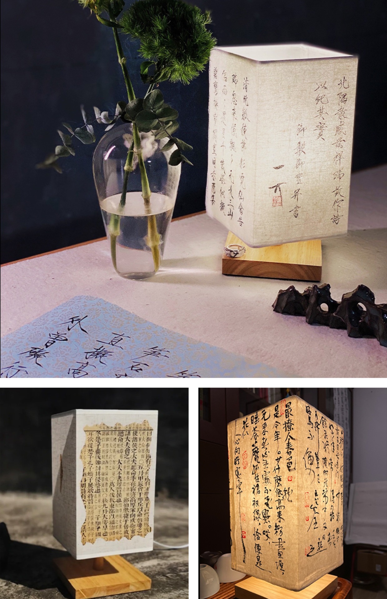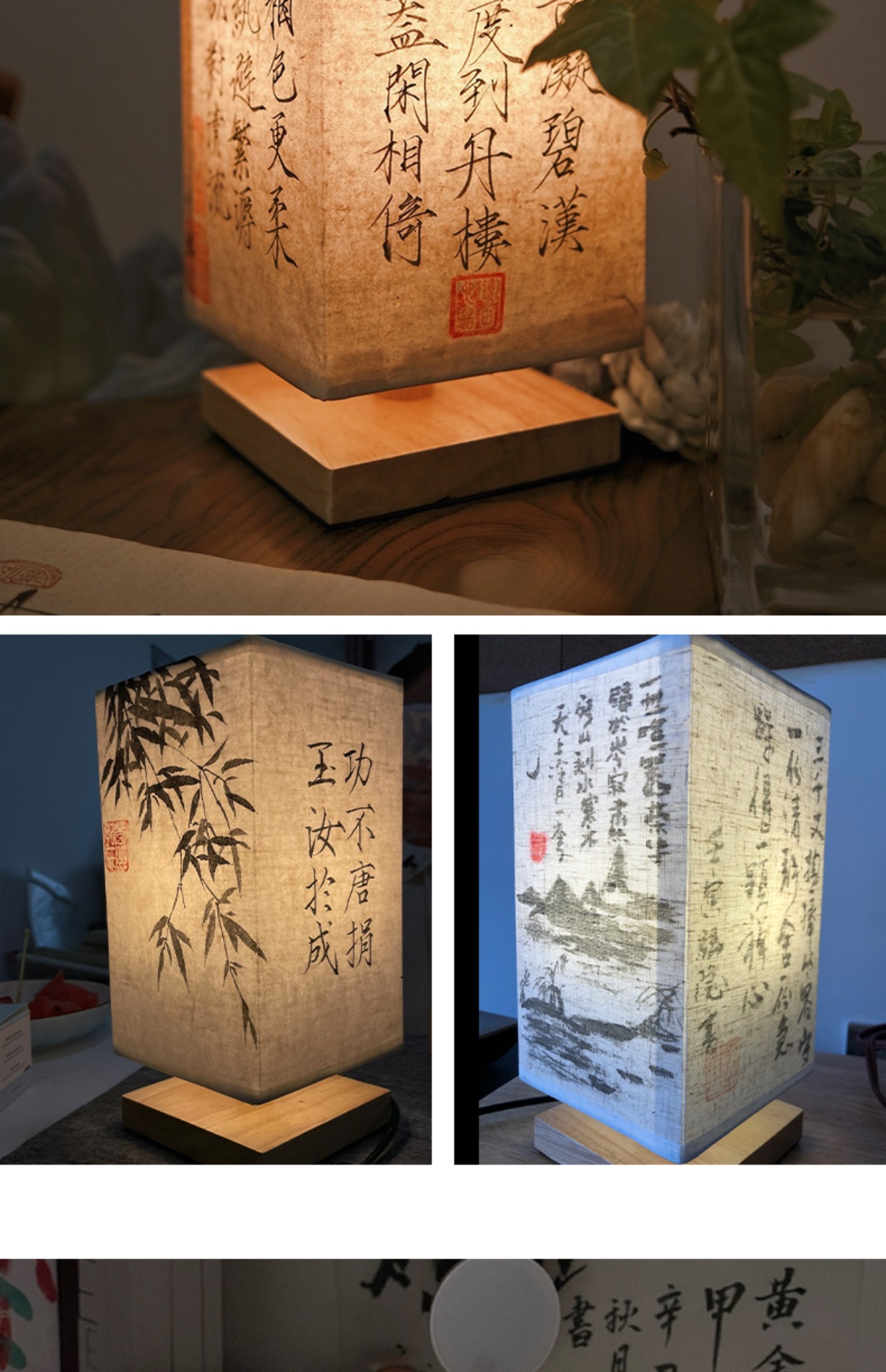 Handmade DIY Chinese Style Antique Table Lamp Bedroom Bedside Lamp Vintage Zen Style Calligraphy Guofeng Study Nightlight