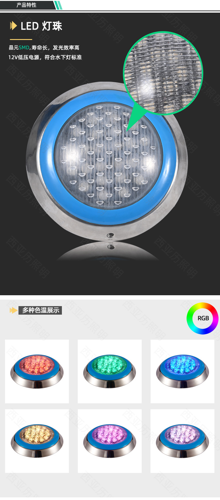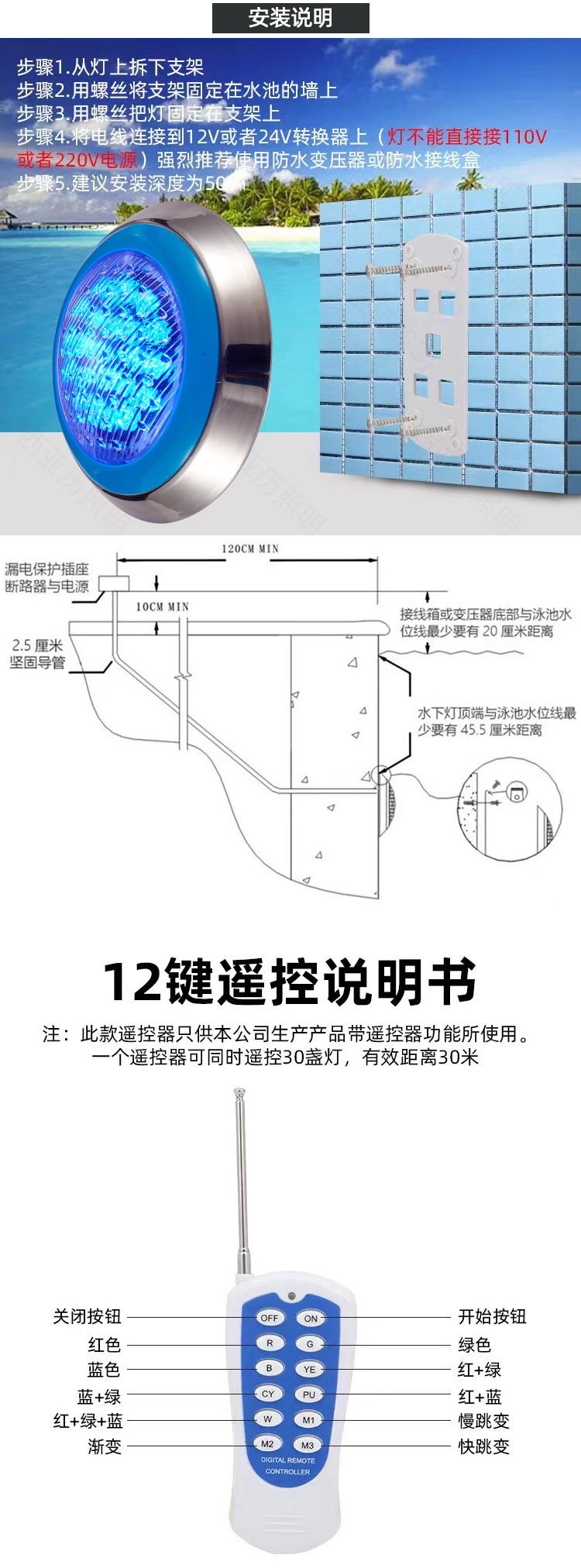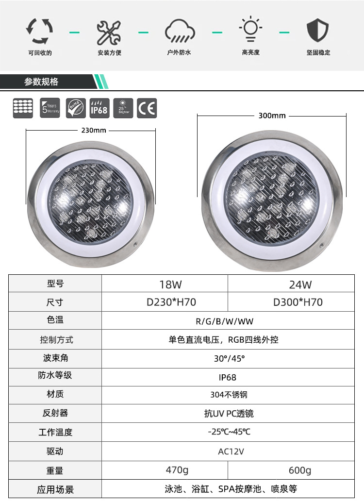 304 stainless steel LED swimming pool lamp wall-mounted AC12V bath lamp 18W/24W colorful remote control underwater lamp