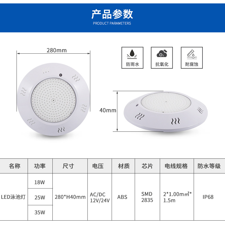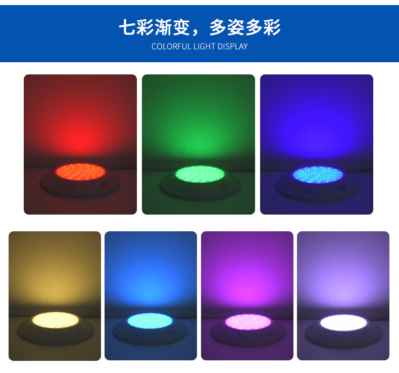 Cross-Border full glue double-panel colorful wireless remote control RGB underwater IP68 waterproof wall-mounted resin pool light
