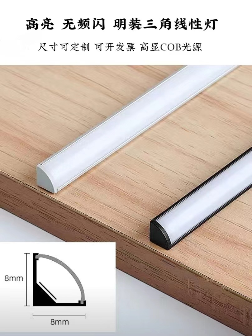 LED surface-mounted mini wardrobe showcase shelf light slotted-free triangle cabinet aluminum alloy COB shelf linear light bar