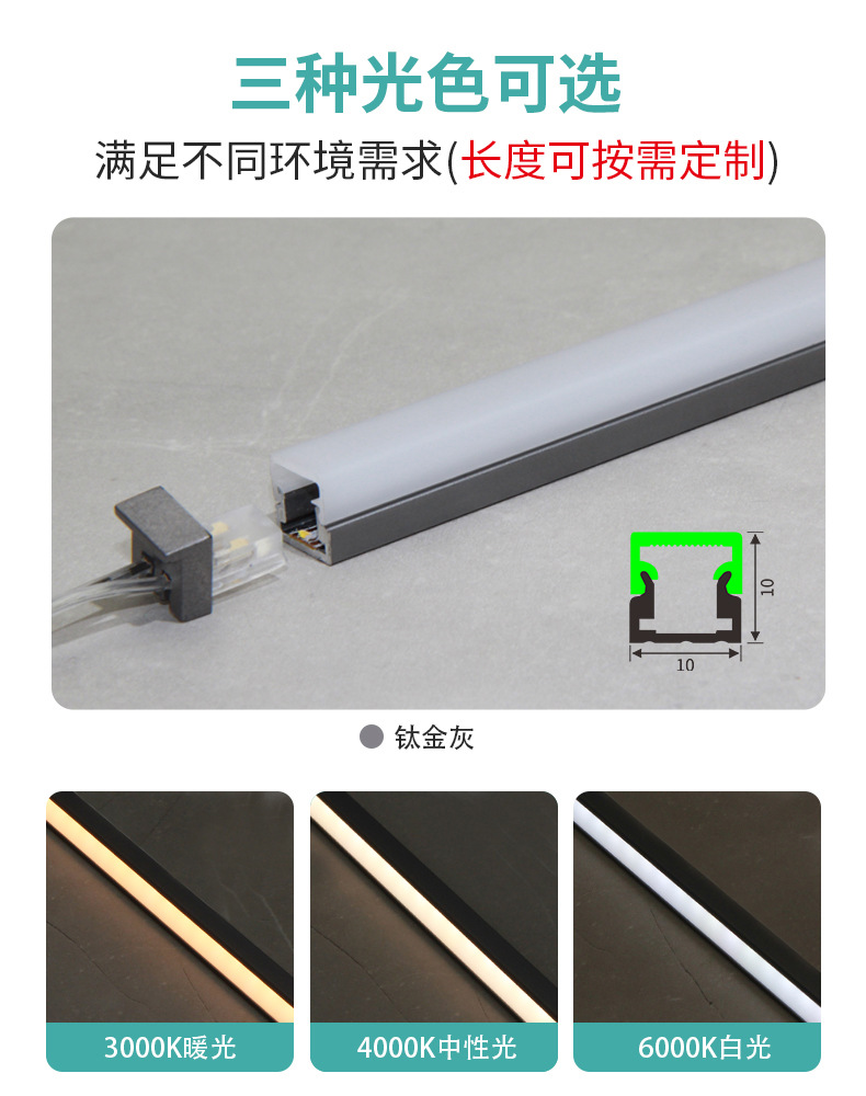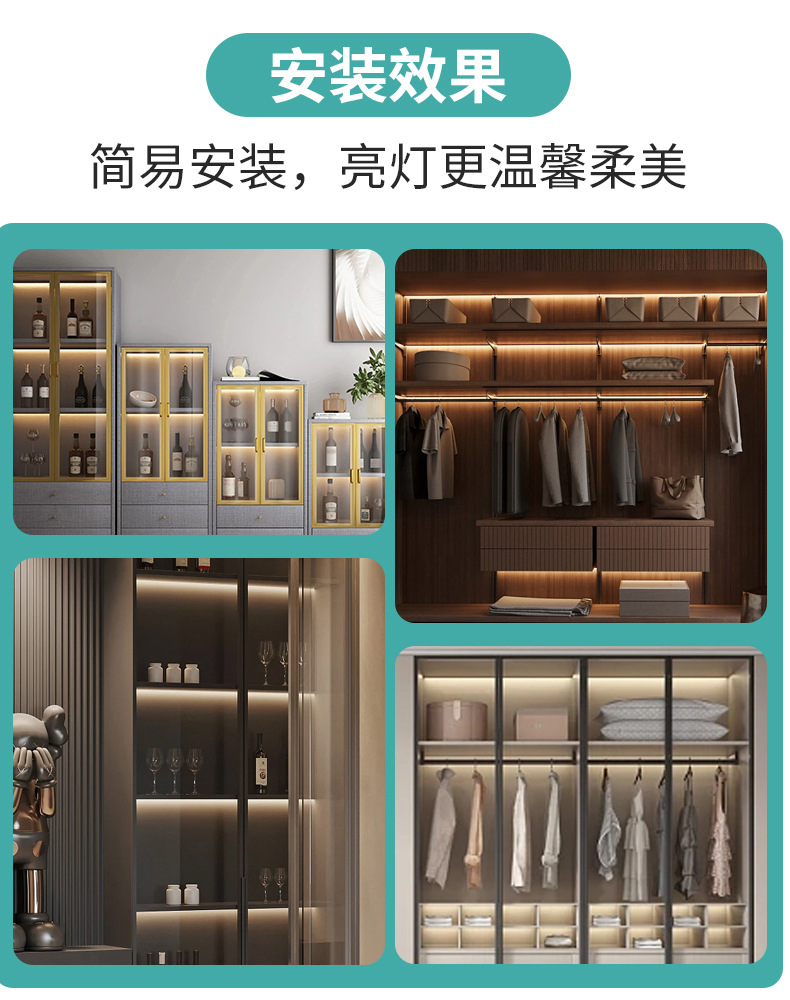 Open-mounted cabinet light 12V Cabinet bottom light open-mounted U-shaped welding-free slotted-free wine cabinet shoe cabinet wardrobe laminate light bar